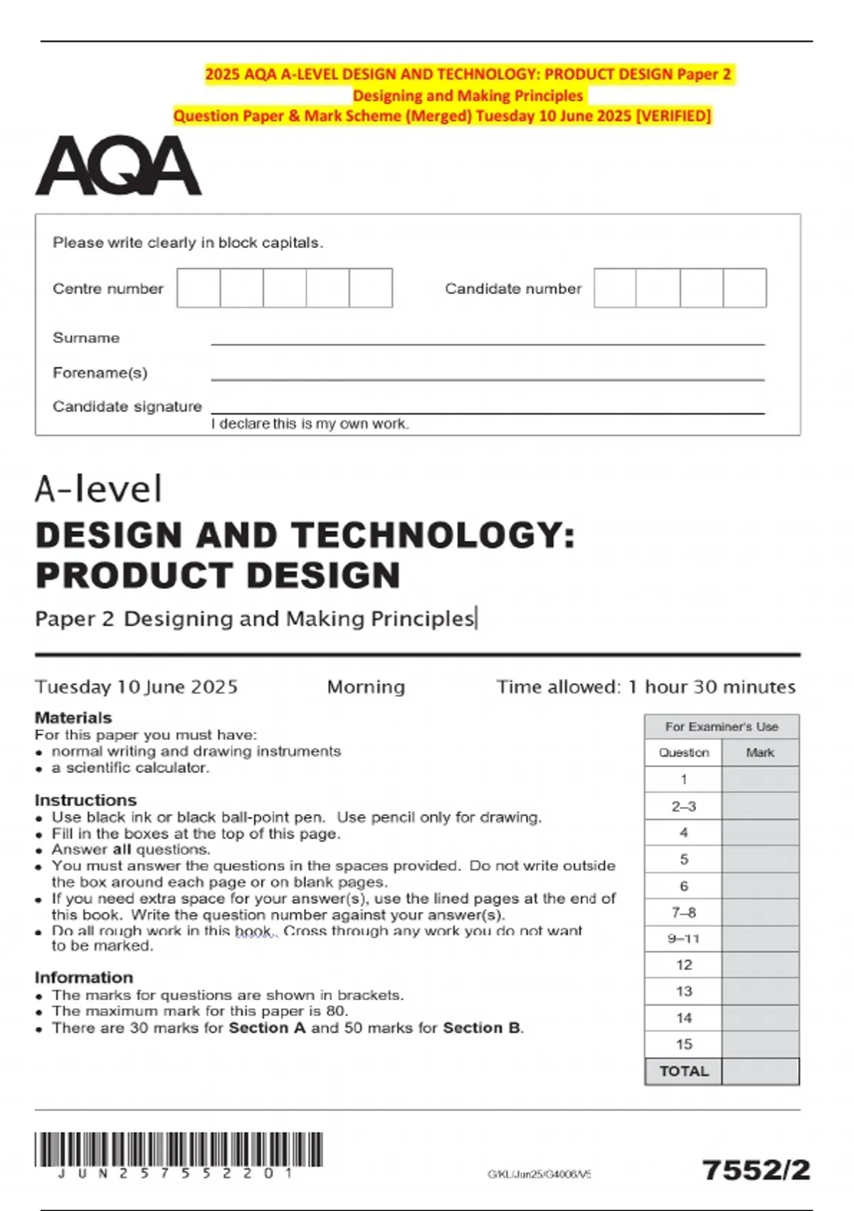 Question Paper & Mark Scheme (Merged) Tuesday 10 June 2025 [VERIFIED]