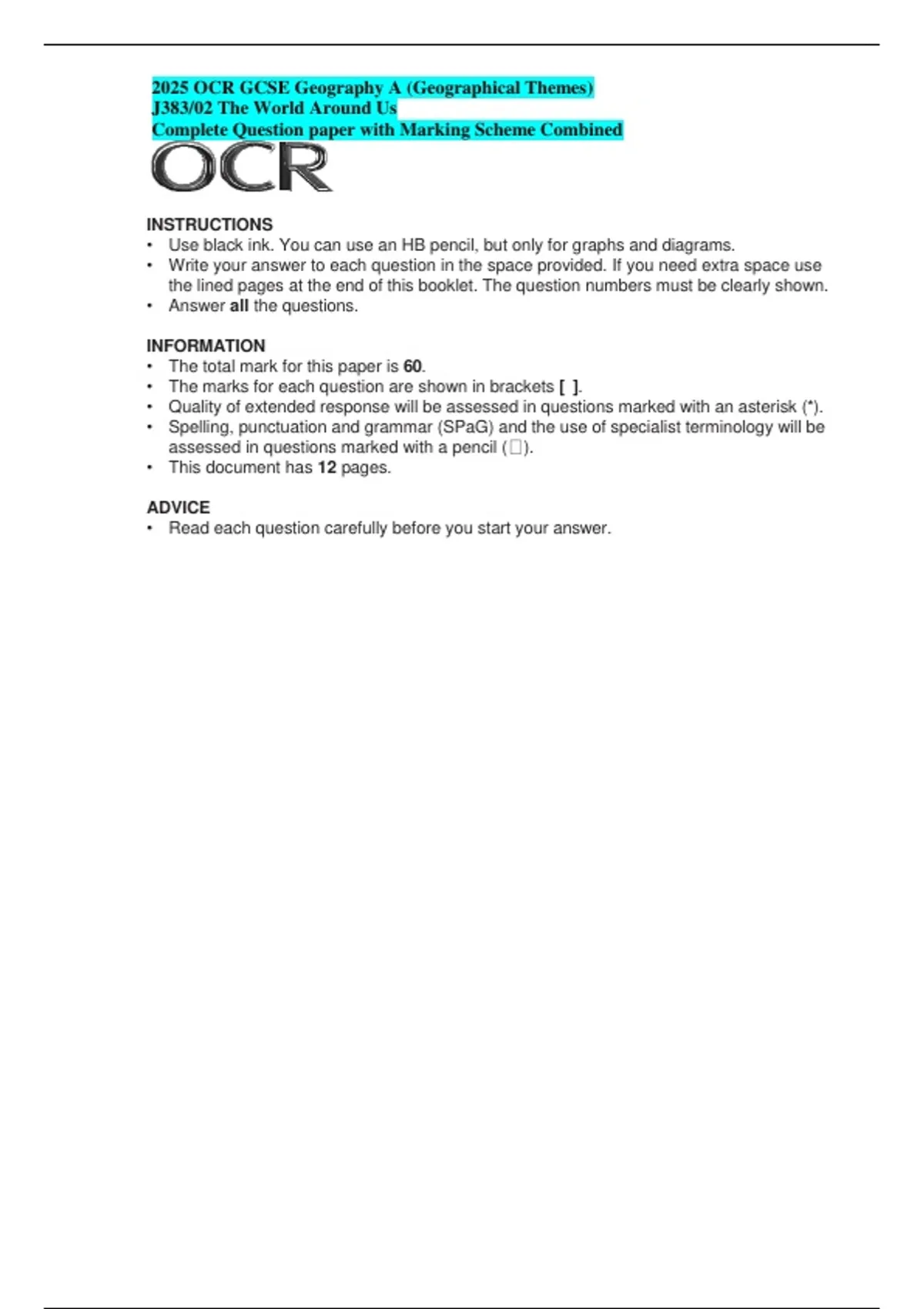 OCR GCSE Geography A (Geographical Themes) J383/02 The World Around Us QP and MS summer 2025