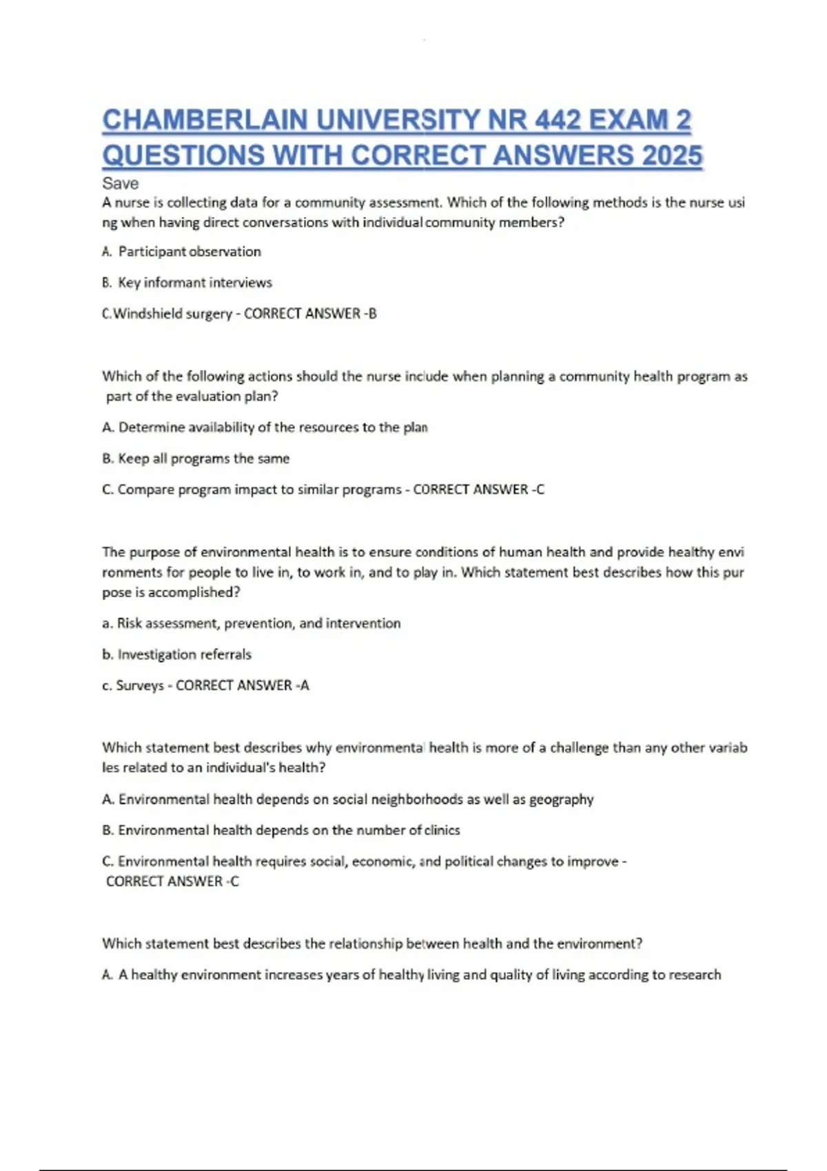 CHAMBERLAIN UNIVERSITY NR 442 EXAM 2 QUESTIONS WITH CORRECT DETAILED ANSWERS A+ VERIFIED LATEST VERSIONCHAMBERLAIN UNIVERSITY NR 442 EXAM 2 QUESTIONS WITH CORRECT DETAILED ANSWERS A+ VERIFIED LATEST VERSIONCHAMBERLAIN UNIVERSITY NR 442 EXAM 2 QUESTIONS WITH CORRECT DETAILED ANSWERS A+ VERIFIED LATEST VERSION