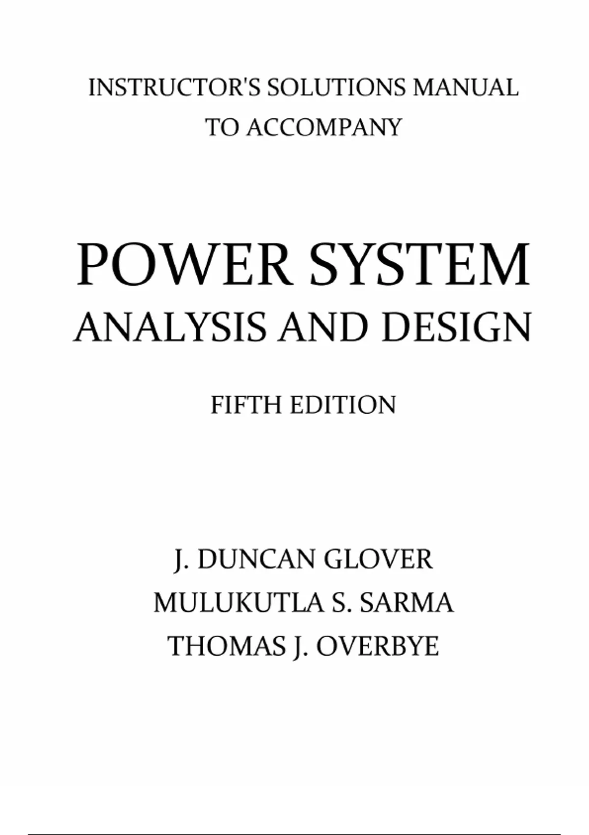 Power System Analysis and Design – 5th Edition by J. Duncan Glover | Instructor’s Solutions Manual (Chapters 2–14)