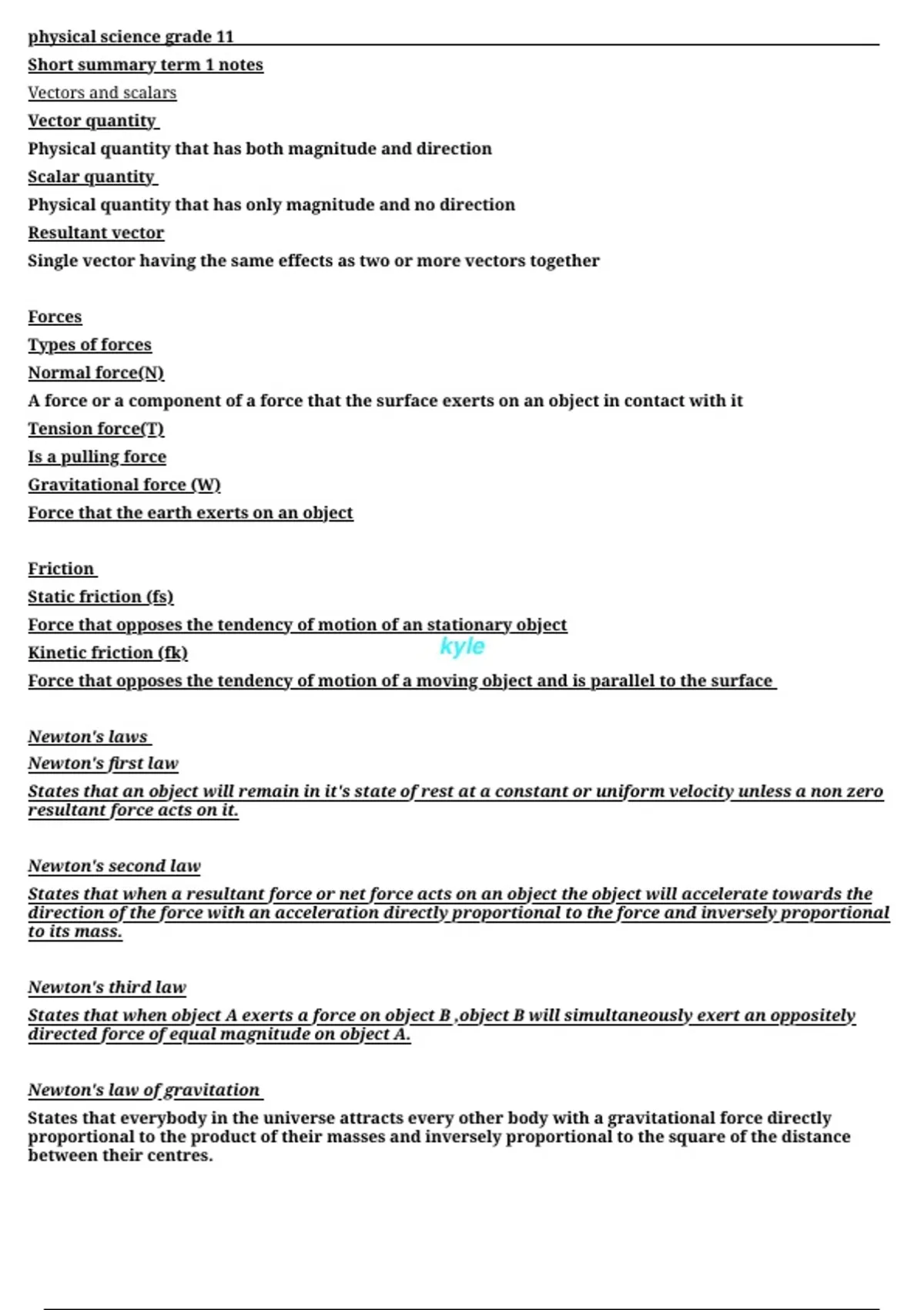 Kinetic friction (fk) kyle