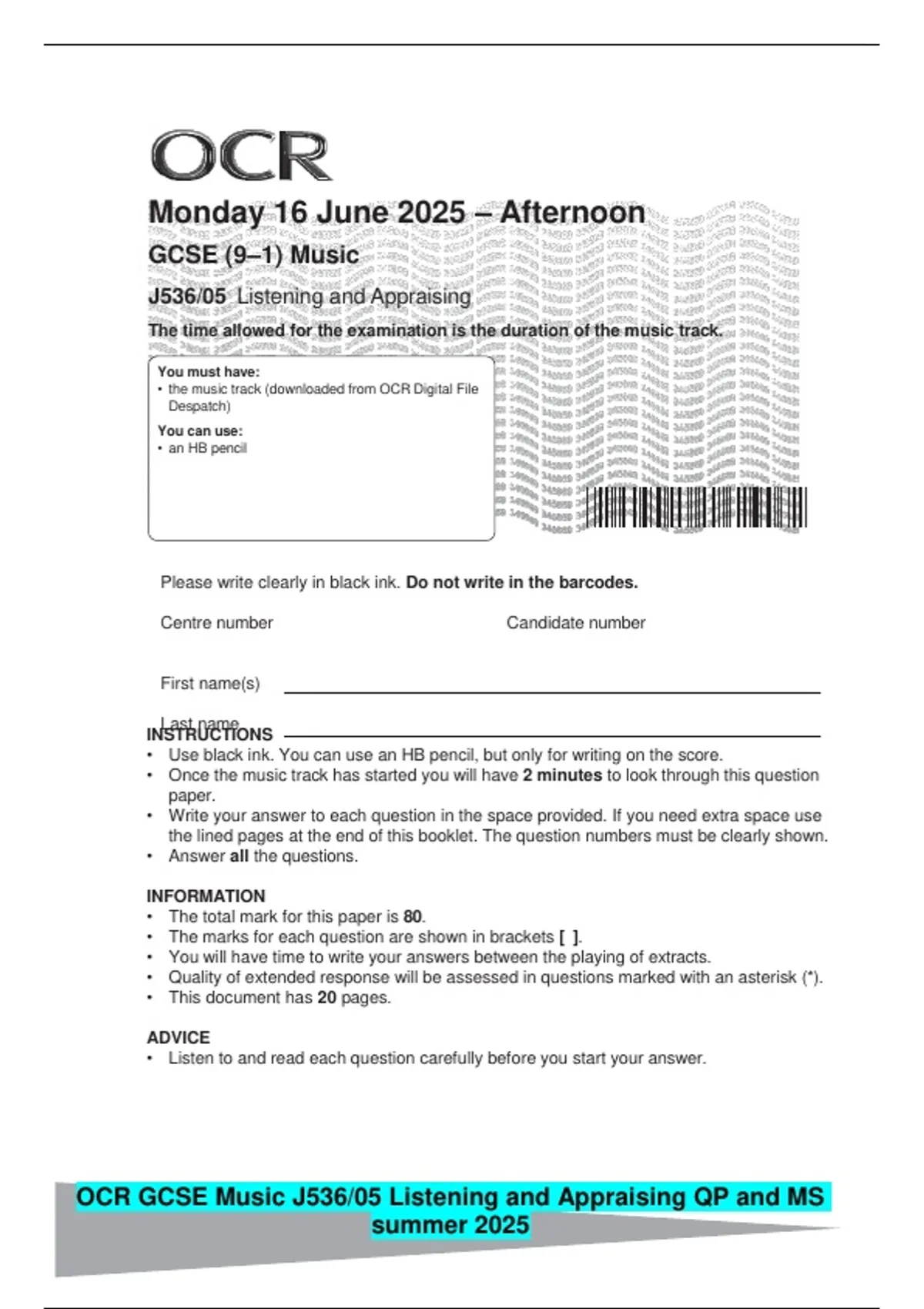 OCR GCSE Music J536/05 Listening and Appraising QP and MS summer 2025