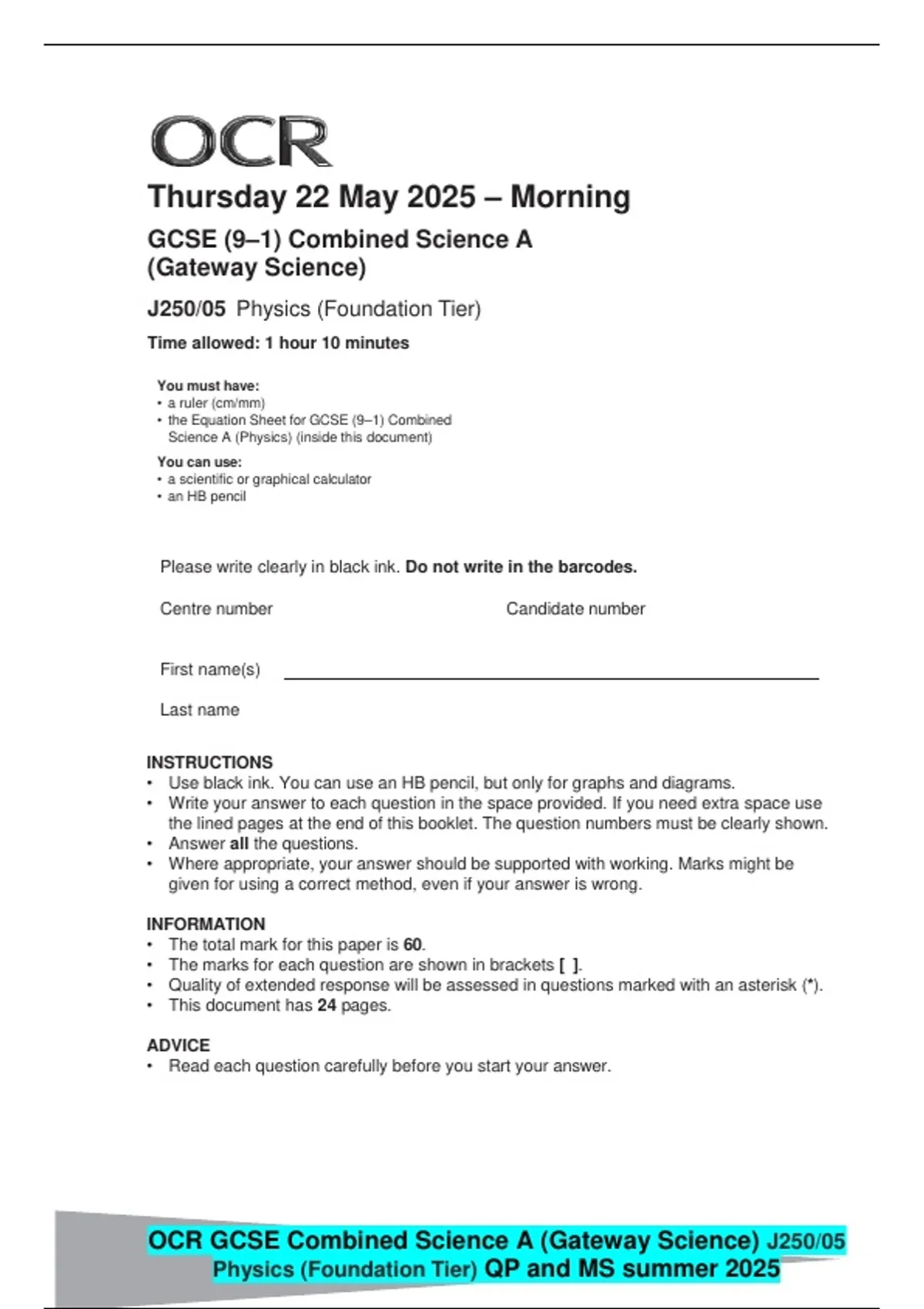 OCR GCSE Combined Science A (Gateway Science) J250/05