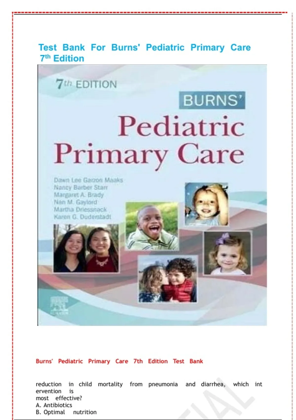 Test Bank For Burns' Pediatric Primary Care 7th Edition With 100% Correct Questions & Answers Graded A+ Guaranteed Pass