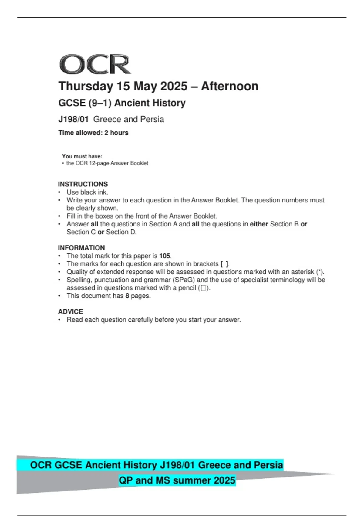 OCR GCSE Ancient History J198/01 Greece and Persia