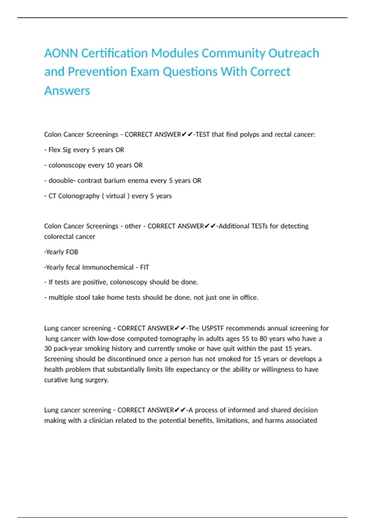 Colon |Cancer |Screenings |- |other |- |CORRECT |ANSWER✔✔-Additional |TESTs |for |detecting |