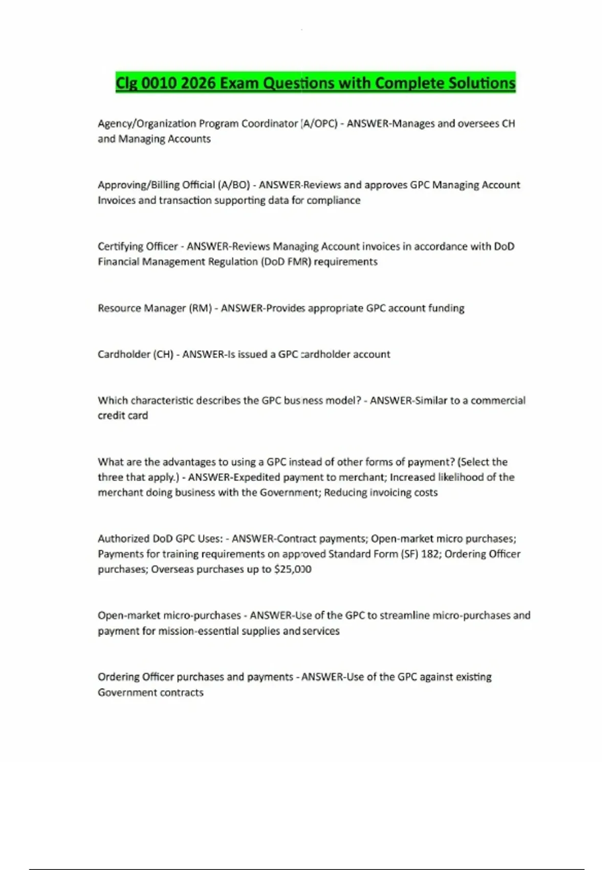Clg Exam Questions with Complete SolutionsClg Exam Questions with Complete Solutions