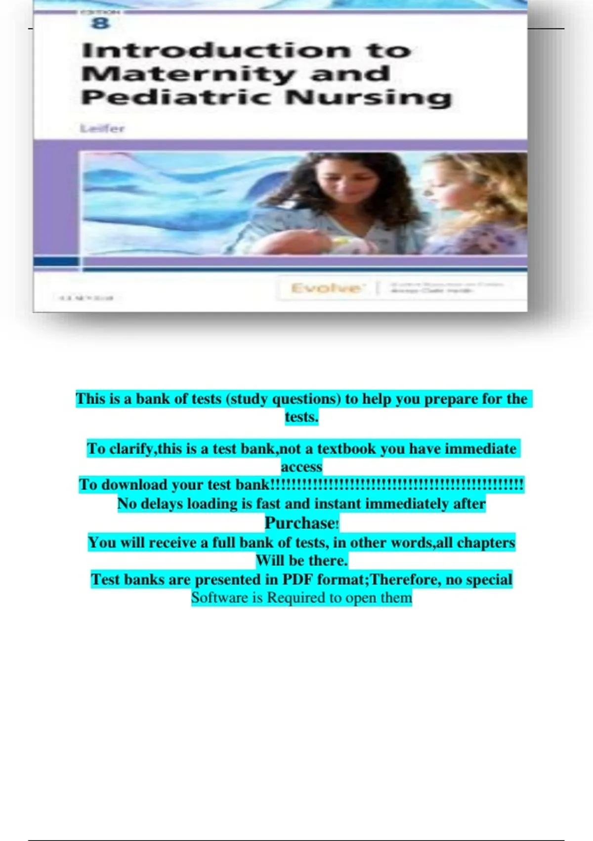 , INTRODUCTION TO MATERNITY AND PEDIATRIC NURSING 8TH EDITION LEIFER TEST BANK
