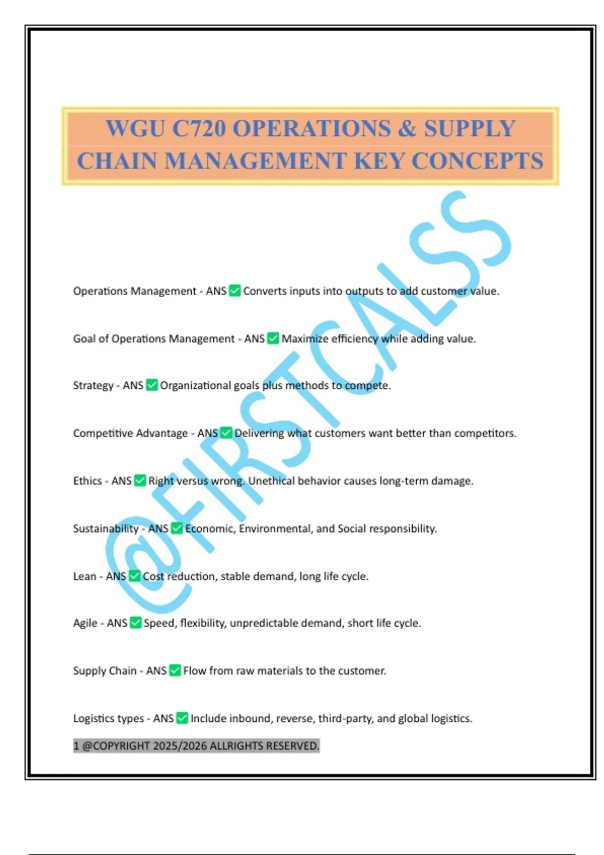 WGU C720 OPERATIONS & SUPPLY CHAIN MANAGEMENT KEY CONCEPTS