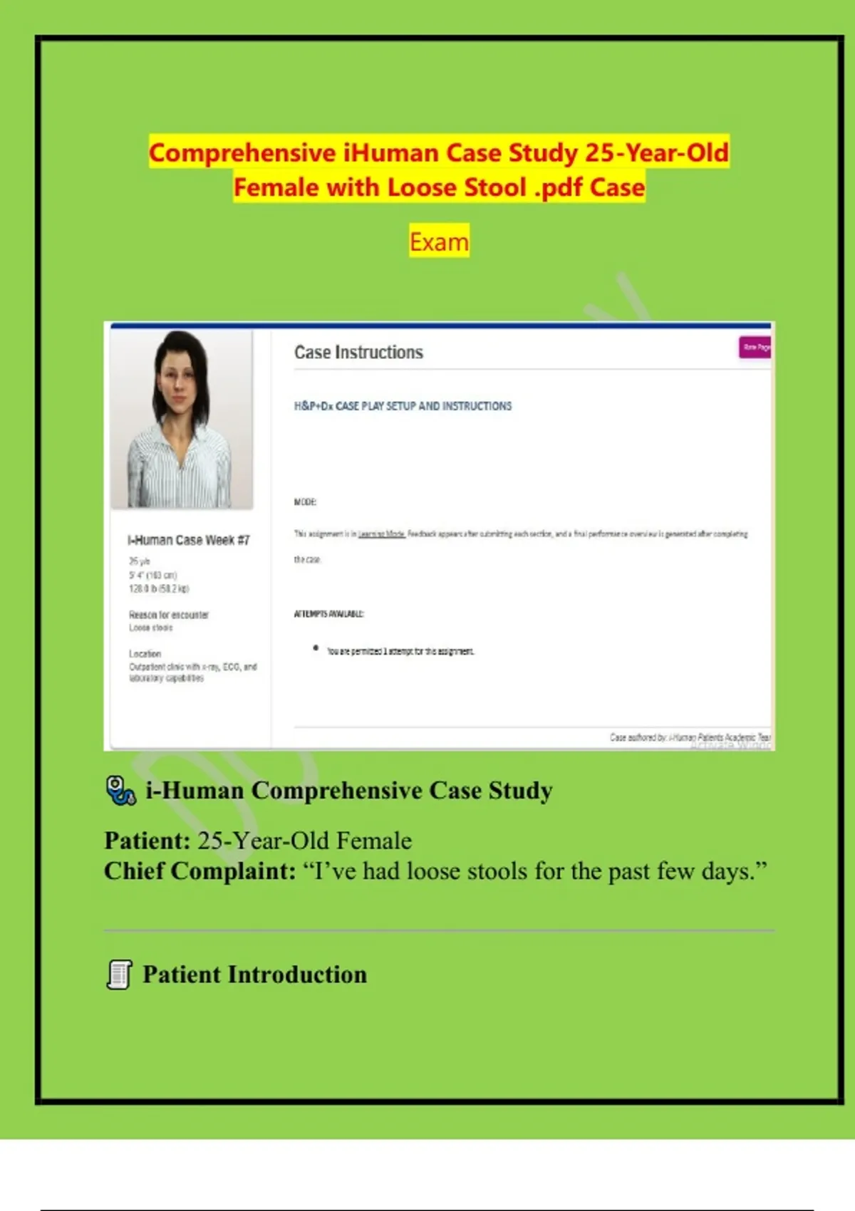 Comprehensive iHuman Case Study 25-Year-Old Female with Loose Stool .pdf Case Exam