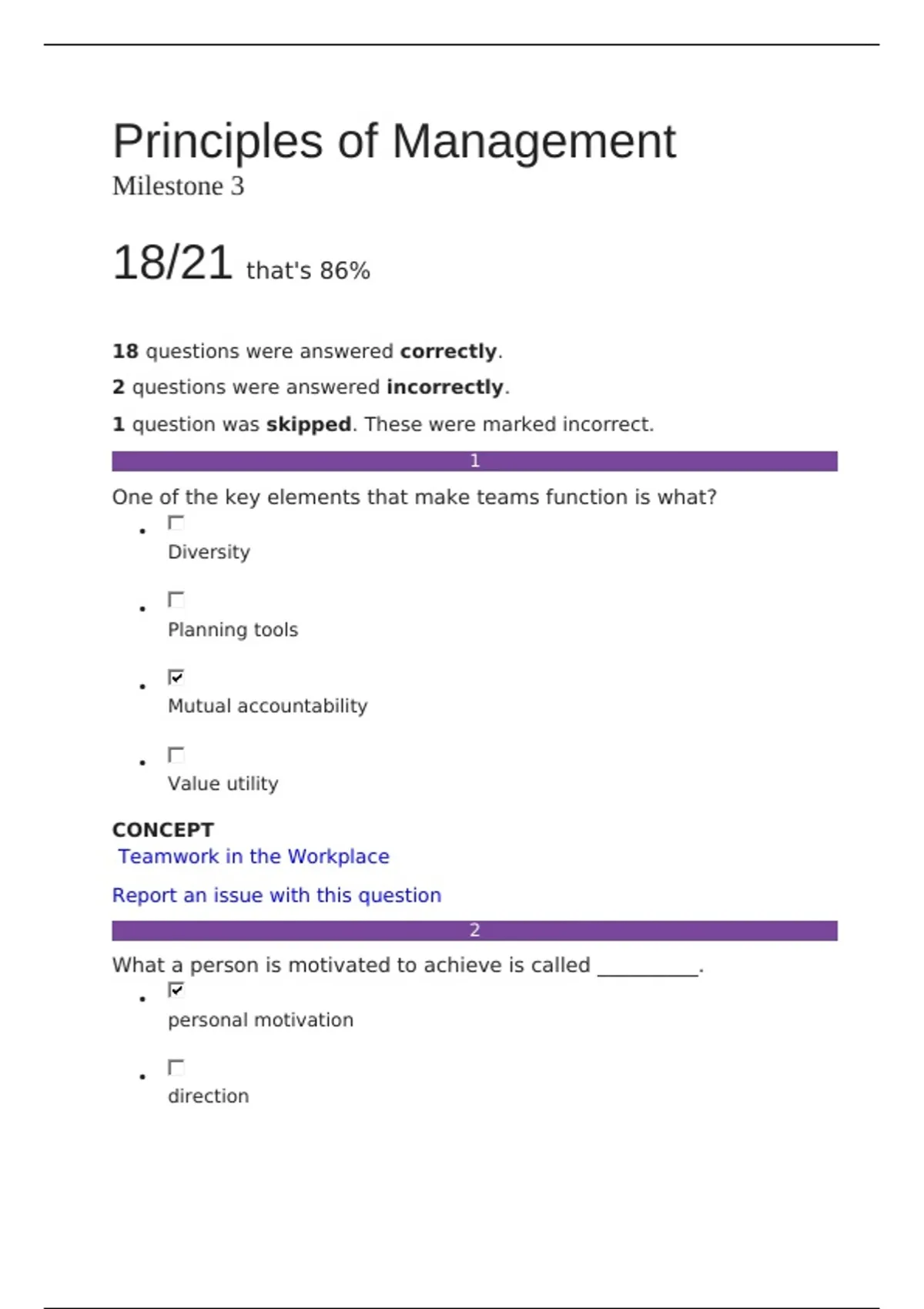 2 questions were answered incorrectly.