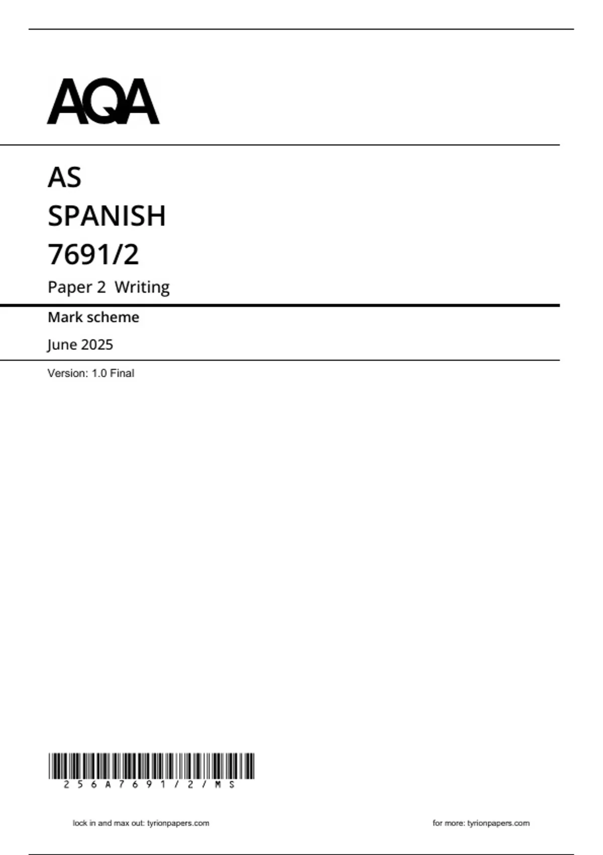 , MARK SCHEME – AS SPANISH – 7691/2 – JUNE 2025