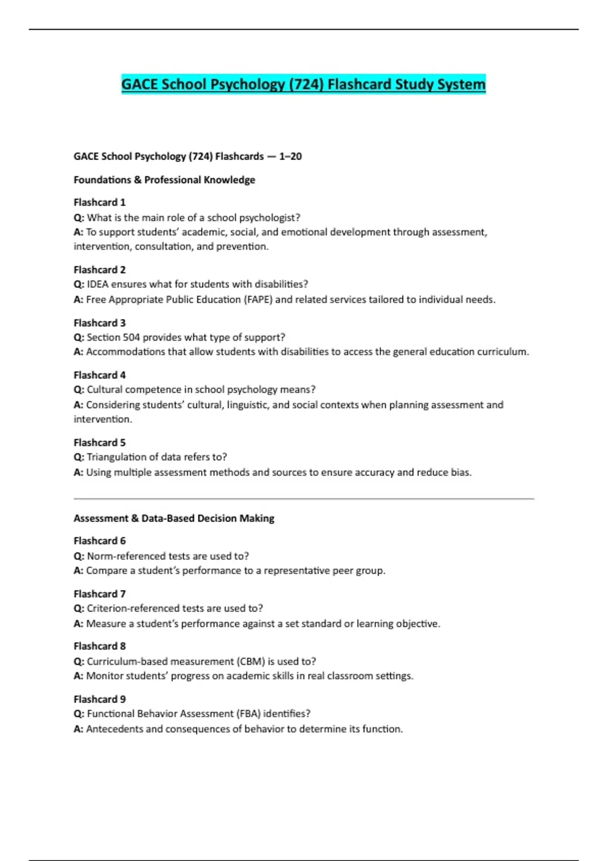 GACE School Psychology (724) Flashcards — 1–20