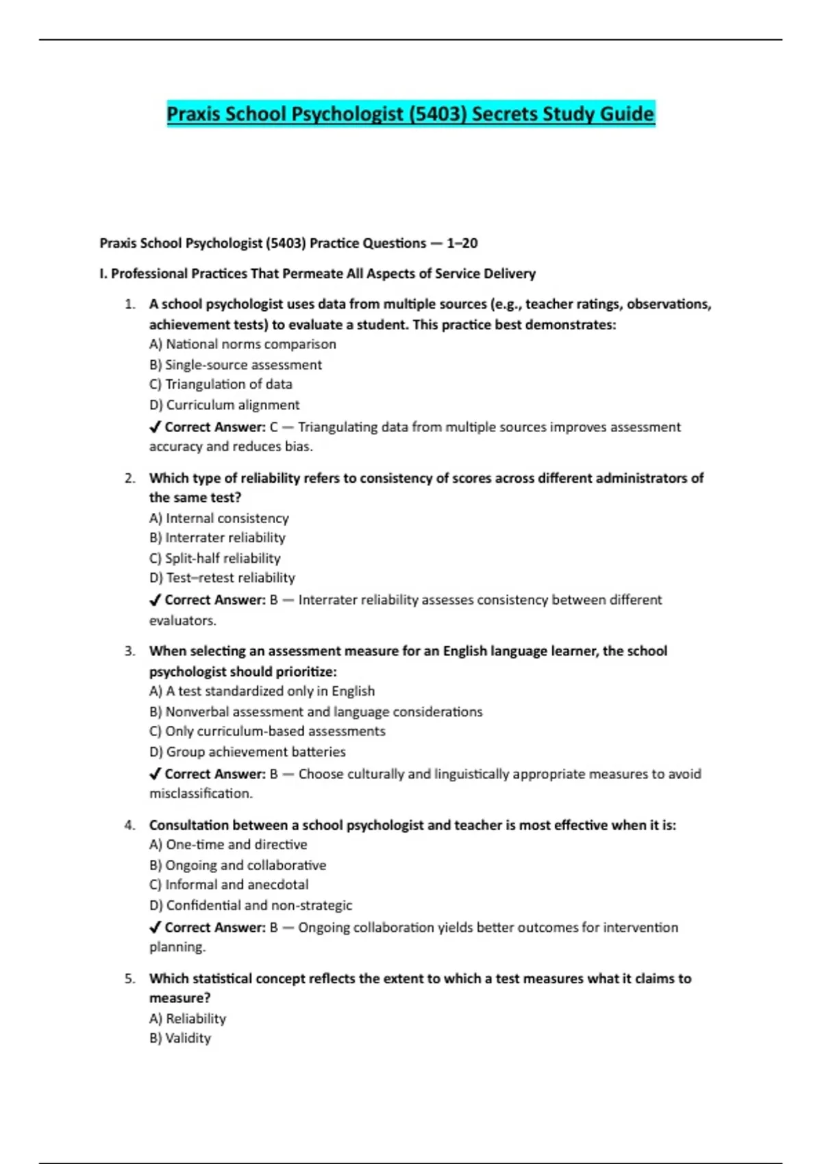 Praxis School Psychologist (5403) Practice Questions — 1–20