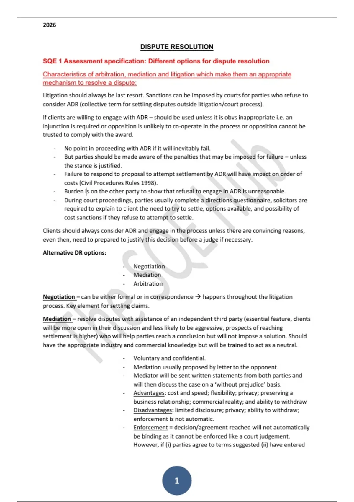 SQE 1 Dispute Resolution