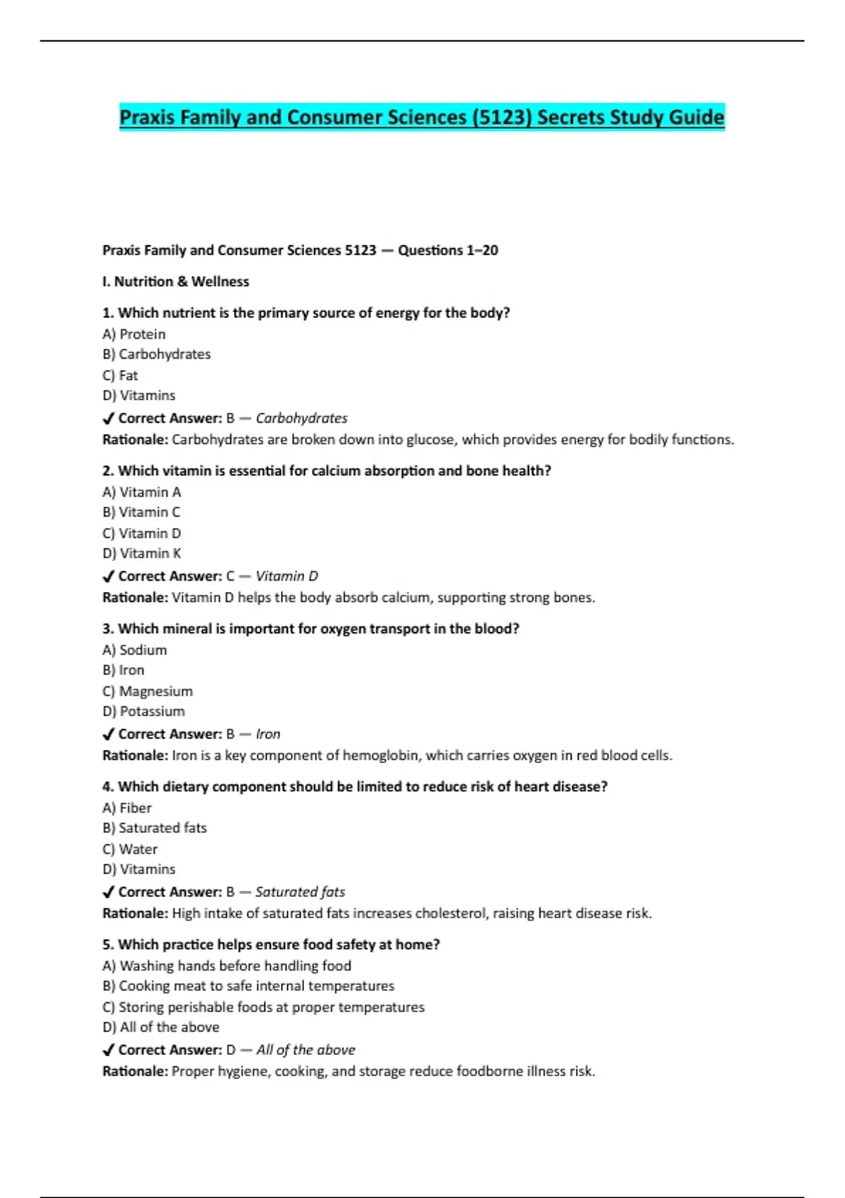 Praxis Family and Consumer Sciences 5123 — Questions 1–20