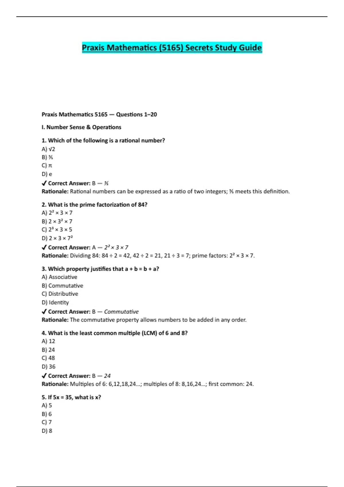 Rationale: Divide both sides by 5: x = 35 ÷ 5 = 7.