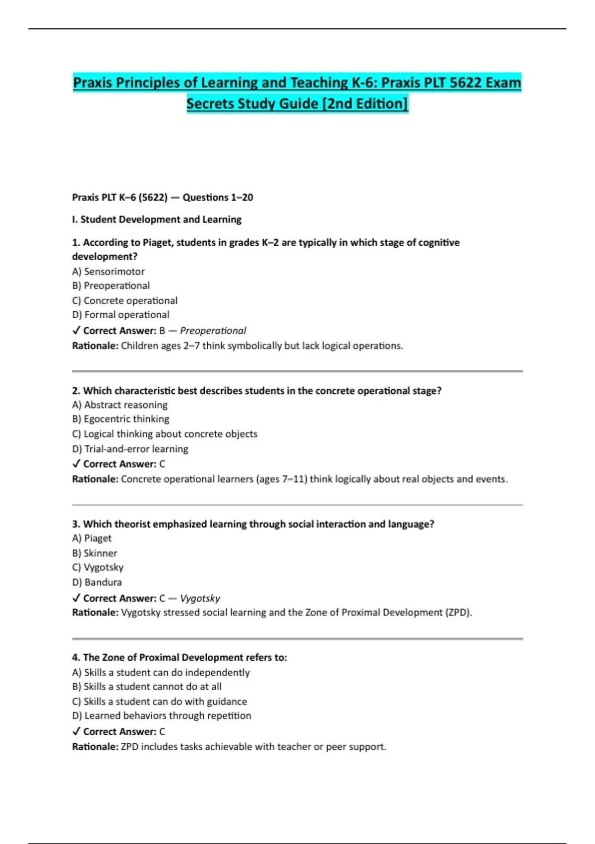 1. According to Piaget, students in grades K–2 are typically in which stage of cognitive