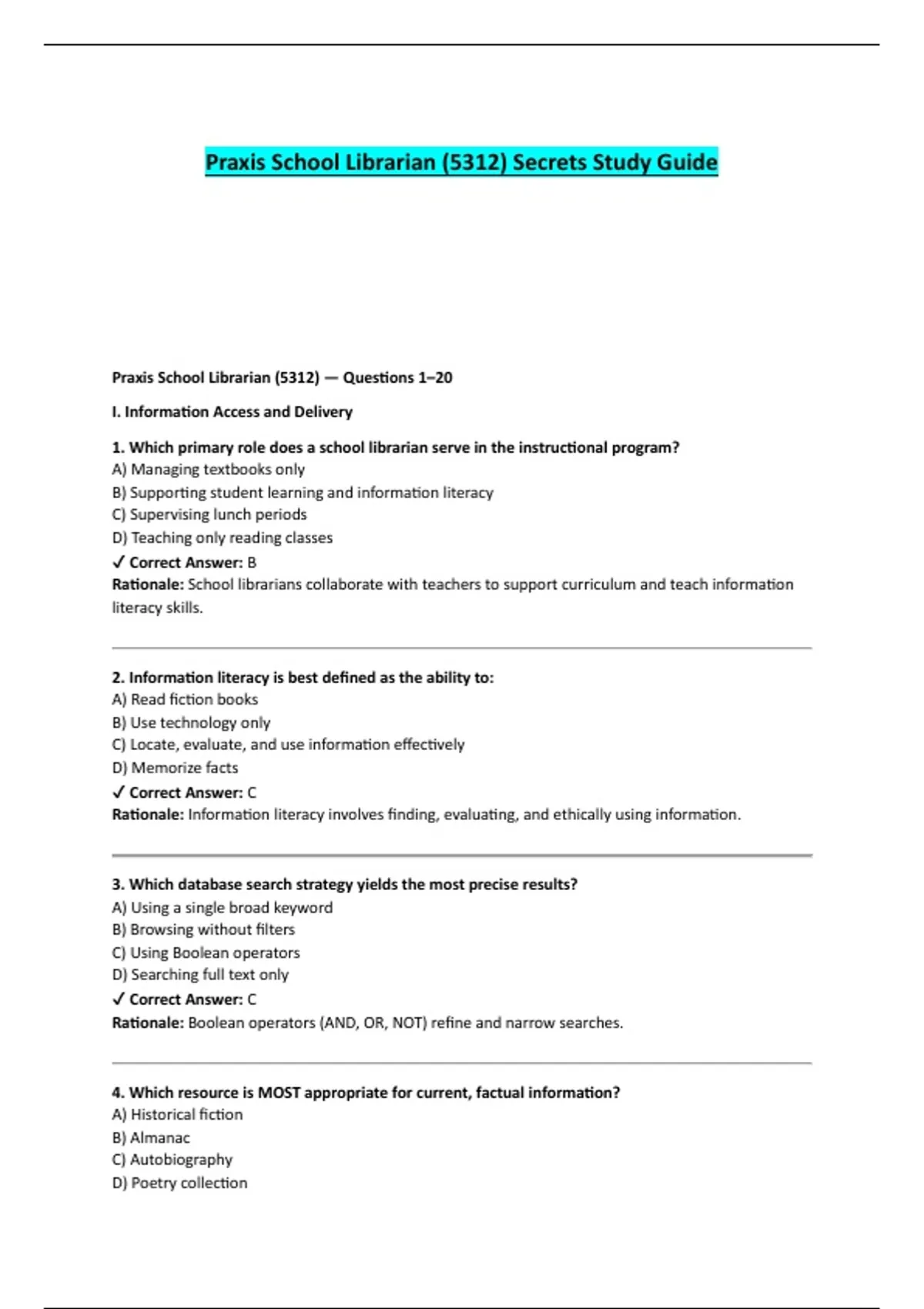 Praxis School Librarian (5312) — Questions 1–20