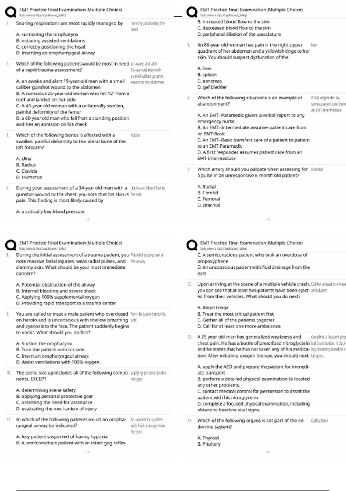 Take this EMT Practice Final Examination (Multiple Choice) to fully prepare for your PSI EMT Written Exam. Updated for 2026, this exam covers airway management, patient assessment, trauma, medical emergencies, pharmacology, EMS operations, and legal/ethical scenarios. Includes 150+ multiple-choice questions with answer key to help you assess readiness, reinforce high-yield topics, and pass your exam confidently on the first attempt.