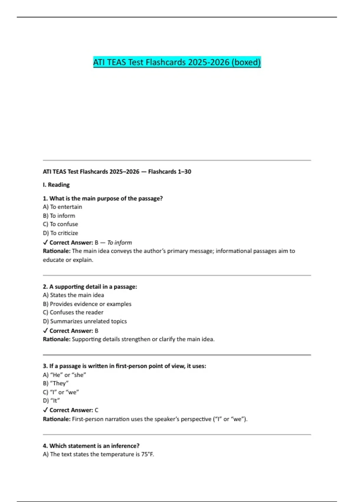 ATI TEAS Test Flashcards 2025–2026 — Flashcards 1–30