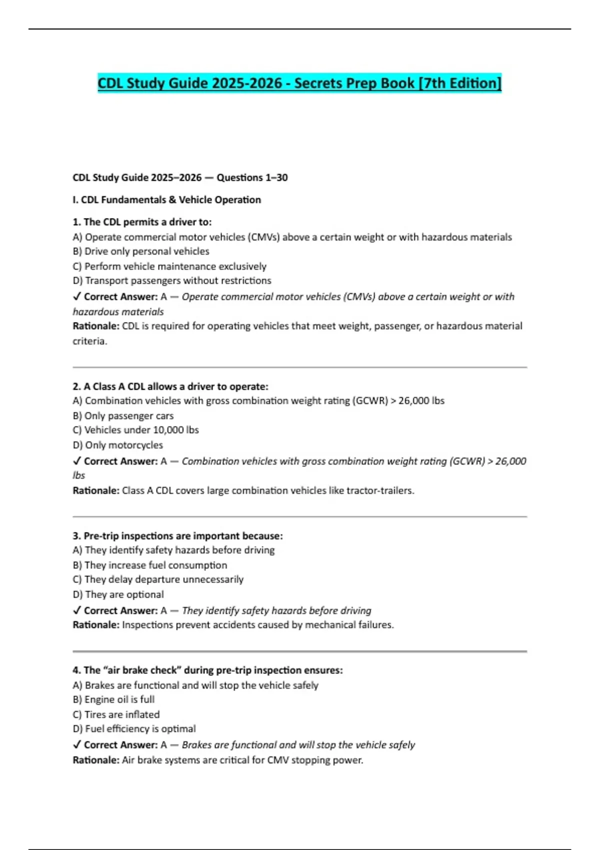 CDL Study Guide 2025–2026 — Questions 1–30