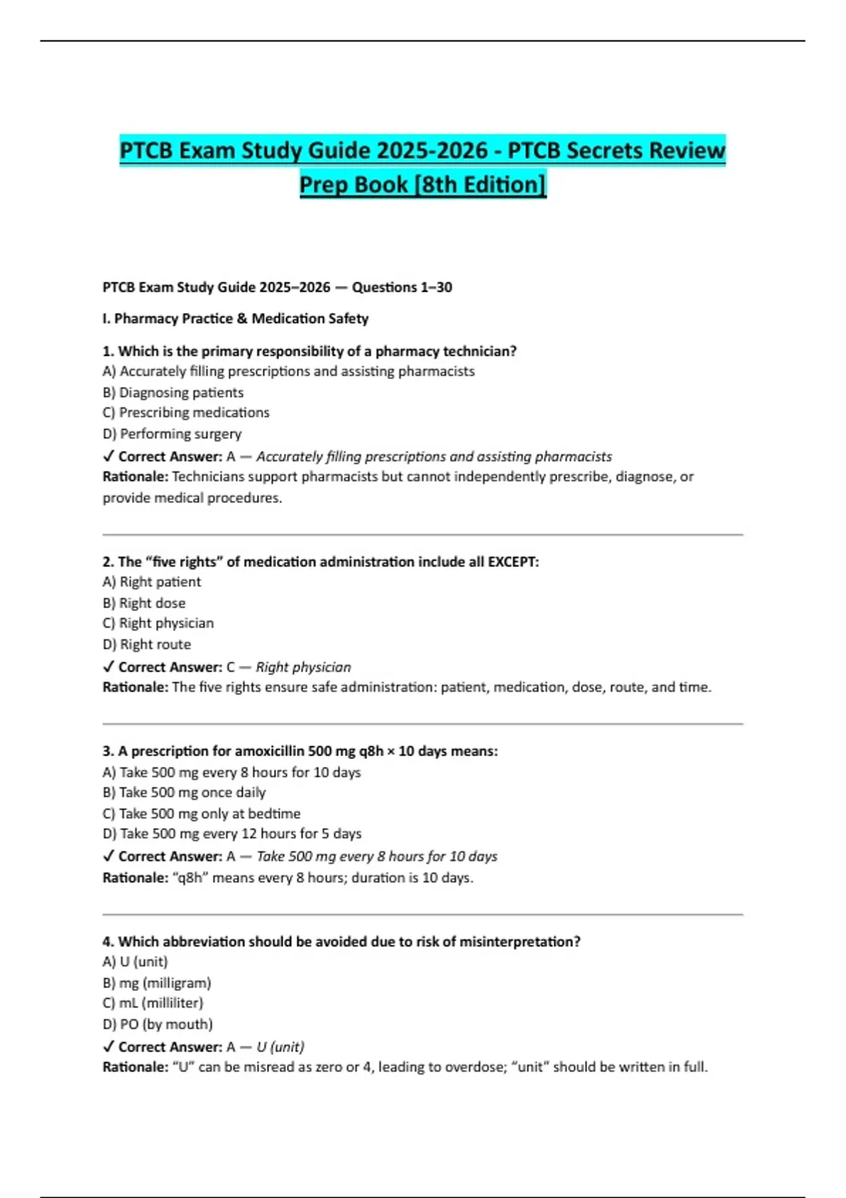 PTCB Exam Study Guide 2025–2026 — Questions 1–30