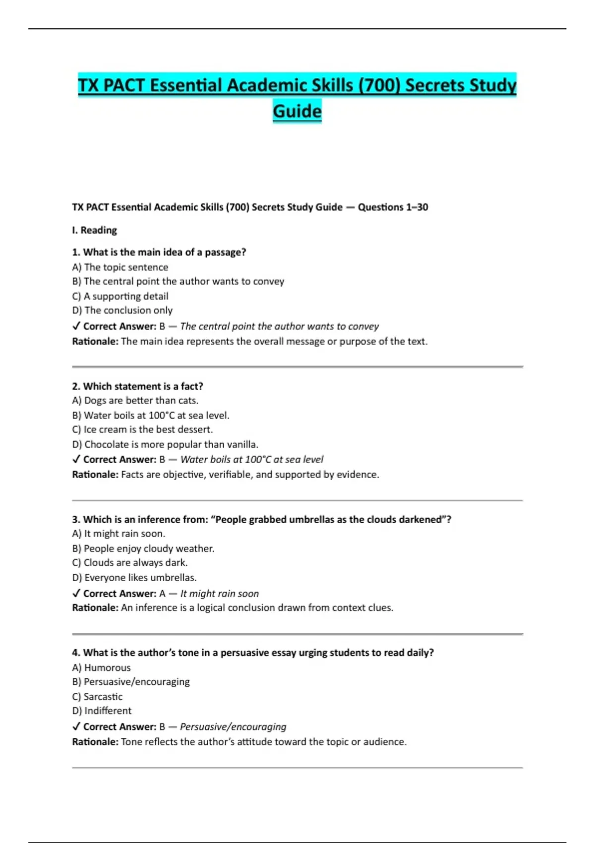 TX PACT Essential Academic Skills (700) Secrets Study Guide — Questions 1–30