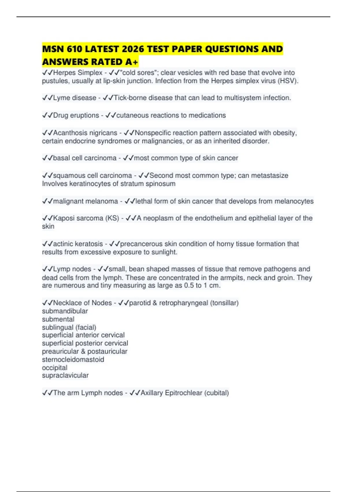 ✔✔basal cell carcinoma - ✔✔most common type of skin cancer