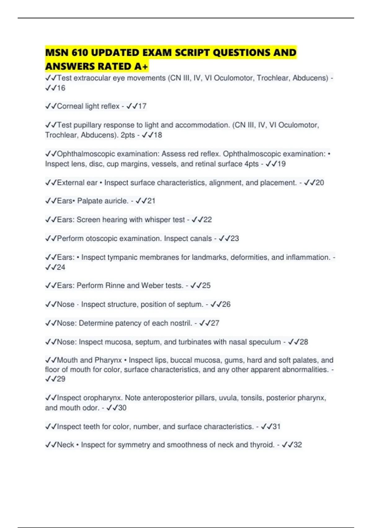 MSN 610 UPDATED EXAM SCRIPT QUESTIONS AND
