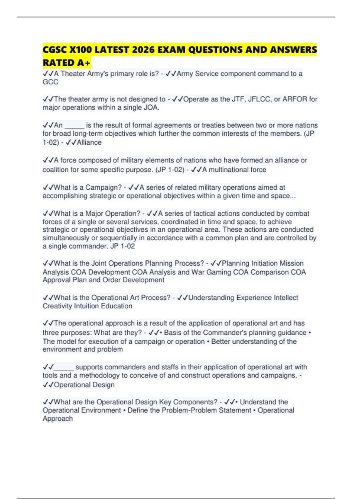 ✔✔A Theater Army's primary role is? - ✔✔Army Service component command to a