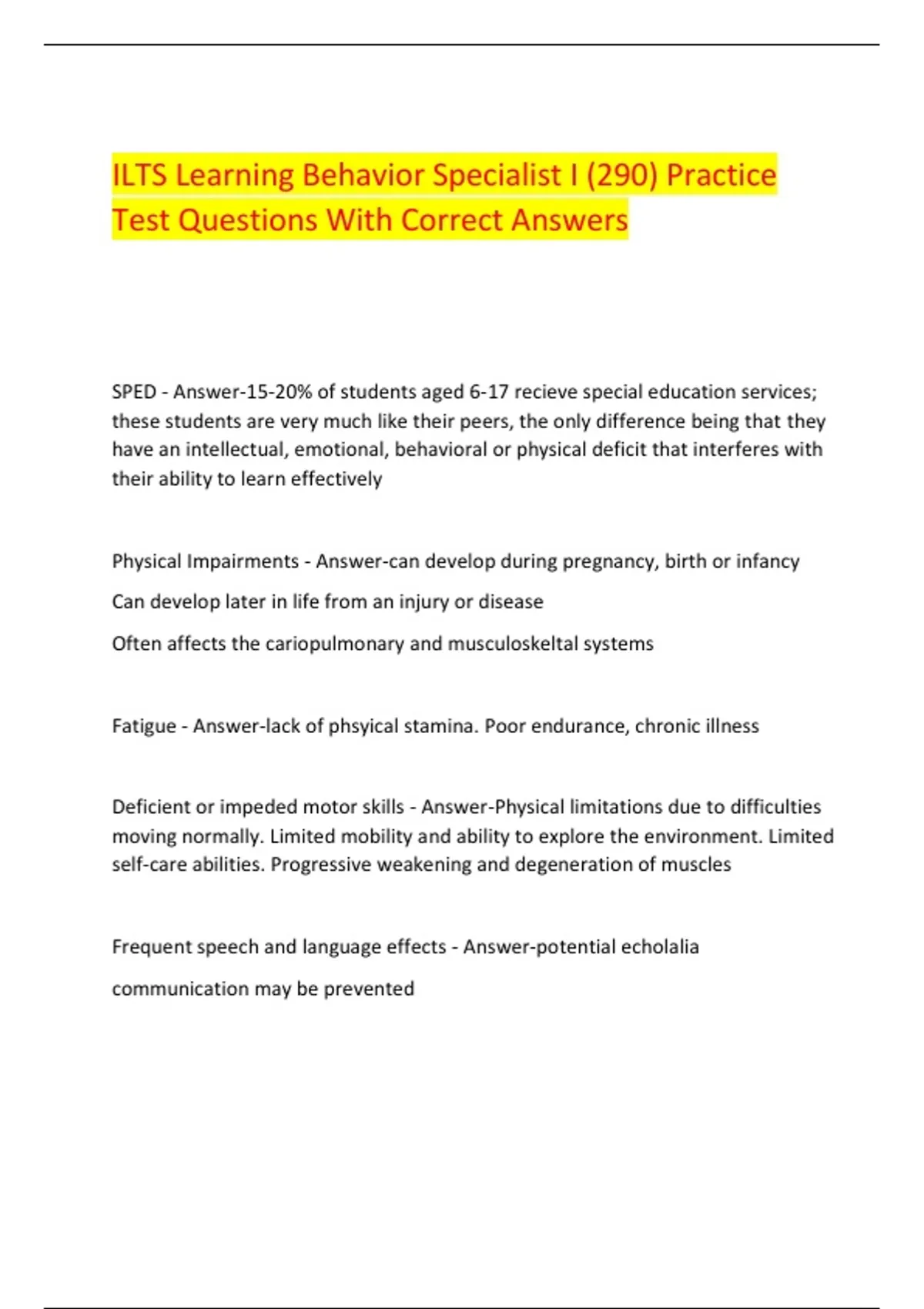 Intellectual Disability - Answer--IQ 70 or below