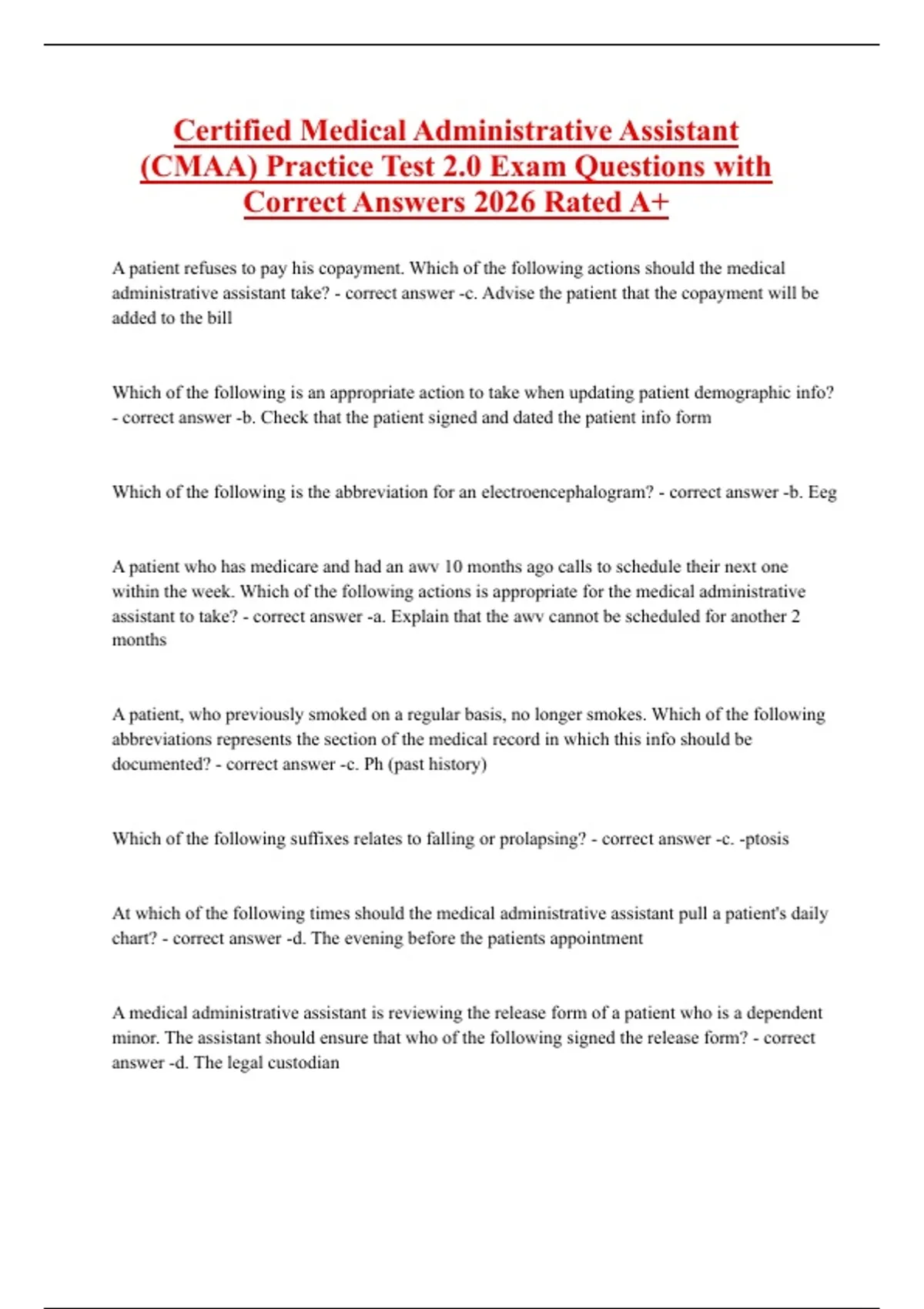 (CMAA) Practice Test 2.0 Exam Questions with