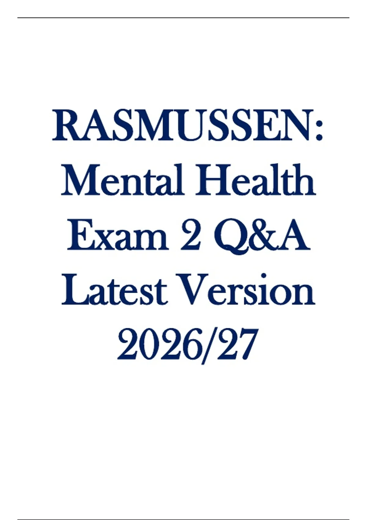,RASMUSSEN MENTAL HEALTH EXAM 2-with 100% verified solutions-2026-2027