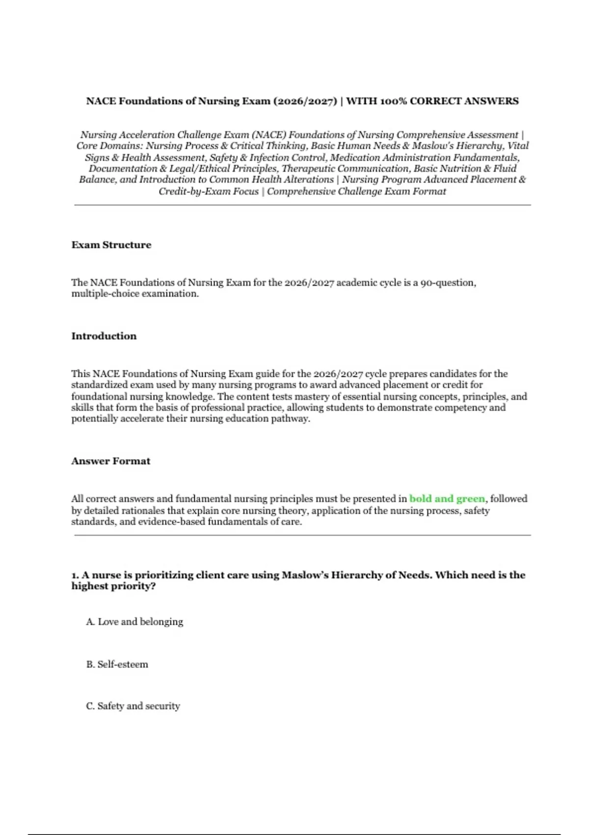 This NACE Foundations of Nursing Exam guide for the 2026/2027 cycle prepares candidates for the