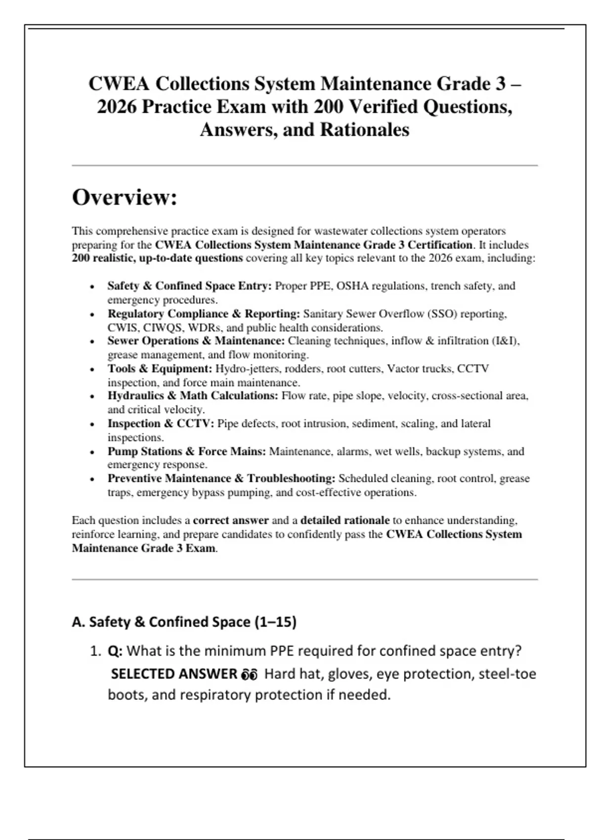 preparing for the CWEA Collections System Maintenance Grade 3 Certification. It includes