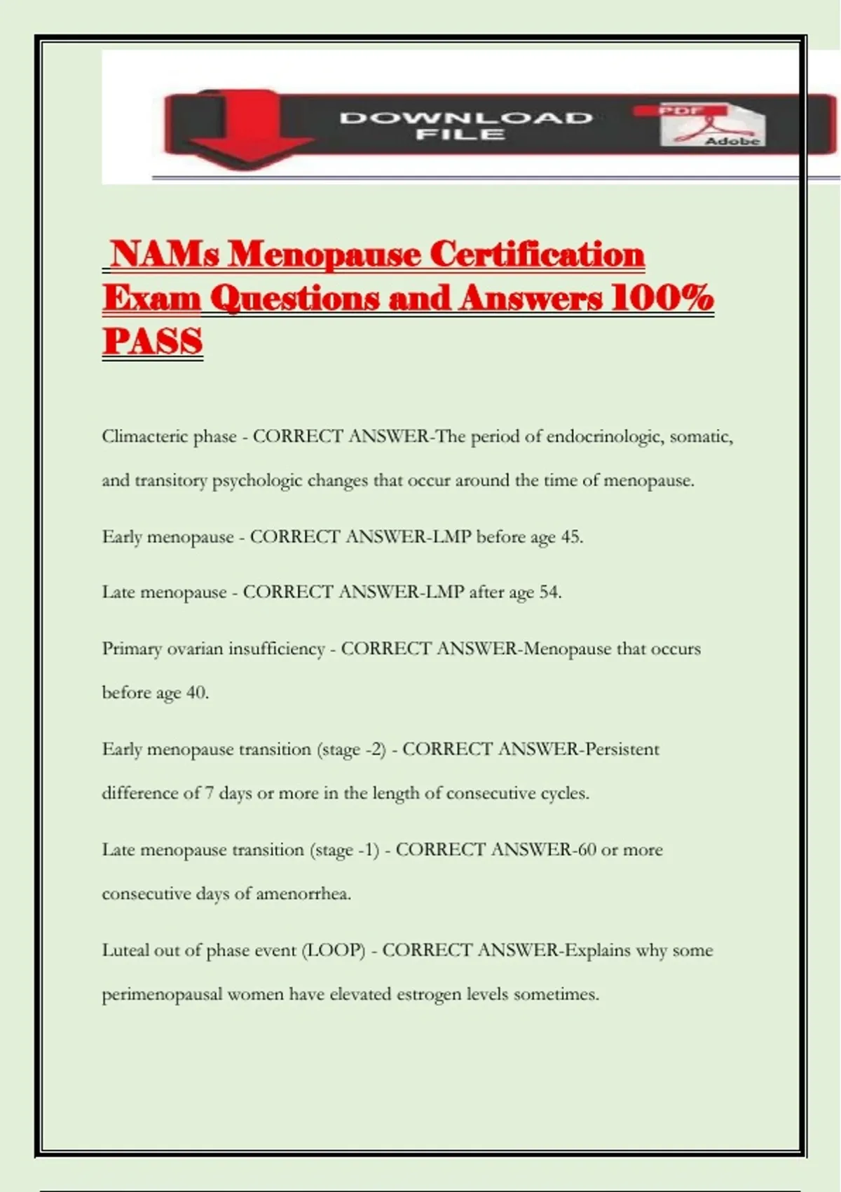 NAMs Menopause Certification Exam Questions and Answers 100% PASS