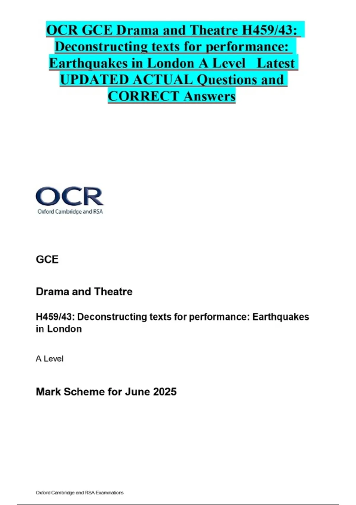 OCR GCE Drama and Theatre H459/43: Deconstructing texts for performance: Earthquakes in London A Level Latest UPDATED ACTUAL Questions and CORRECT Answers