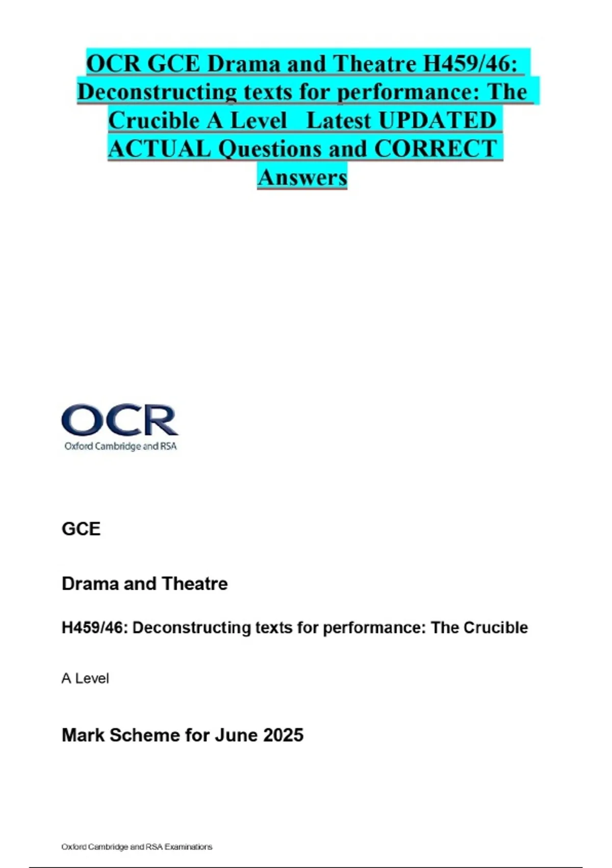 OCR GCE Drama and Theatre H459/46: Deconstructing texts for performance: The Crucible A Level Latest UPDATED ACTUAL Questions and CORRECT Answers