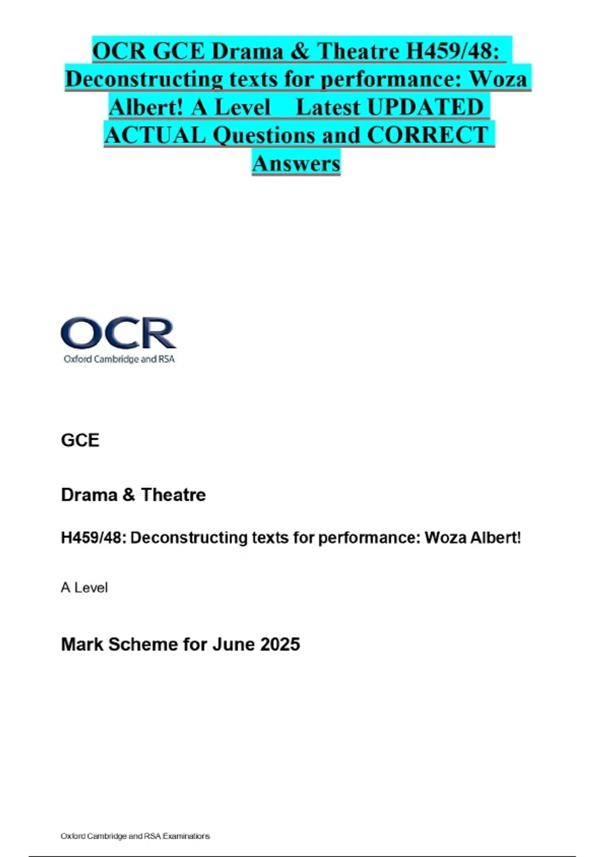 OCR GCE Drama & Theatre H459/48: Deconstructing texts for performance: Woza Albert! A Level Latest UPDATED ACTUAL Questions and CORRECT Answers