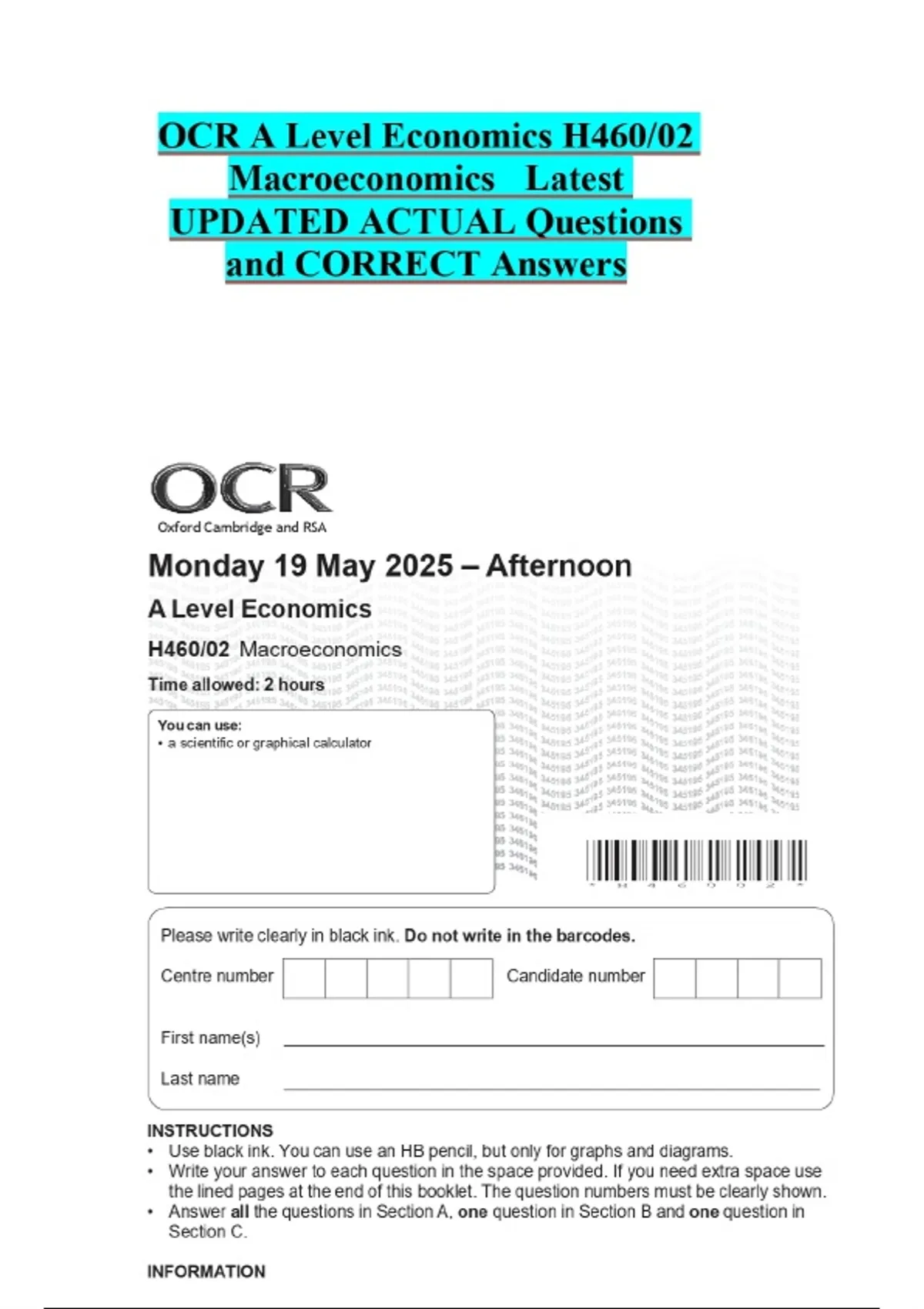 OCR A Level Economics H460/02 Macroeconomics Latest UPDATED ACTUAL Questions and CORRECT Answers