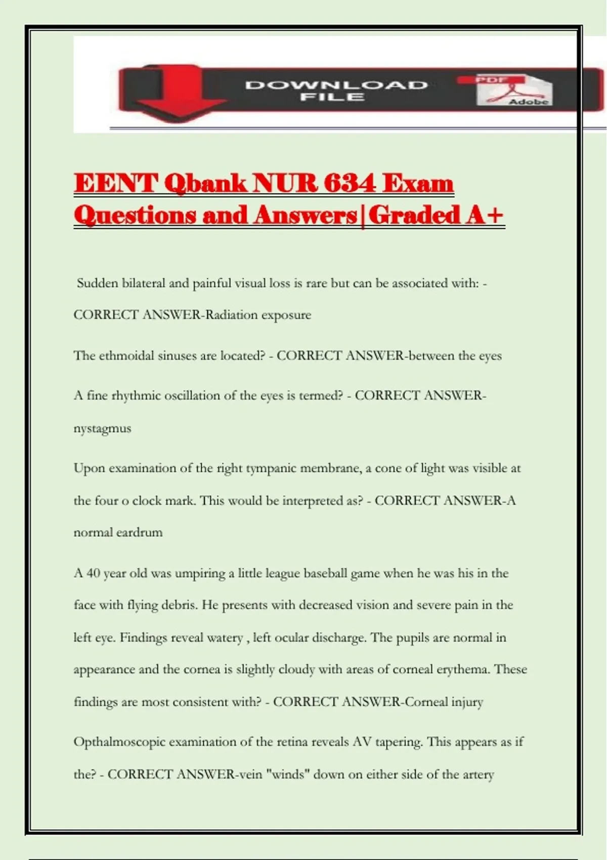 EENT Qbank NUR 634 Exam
