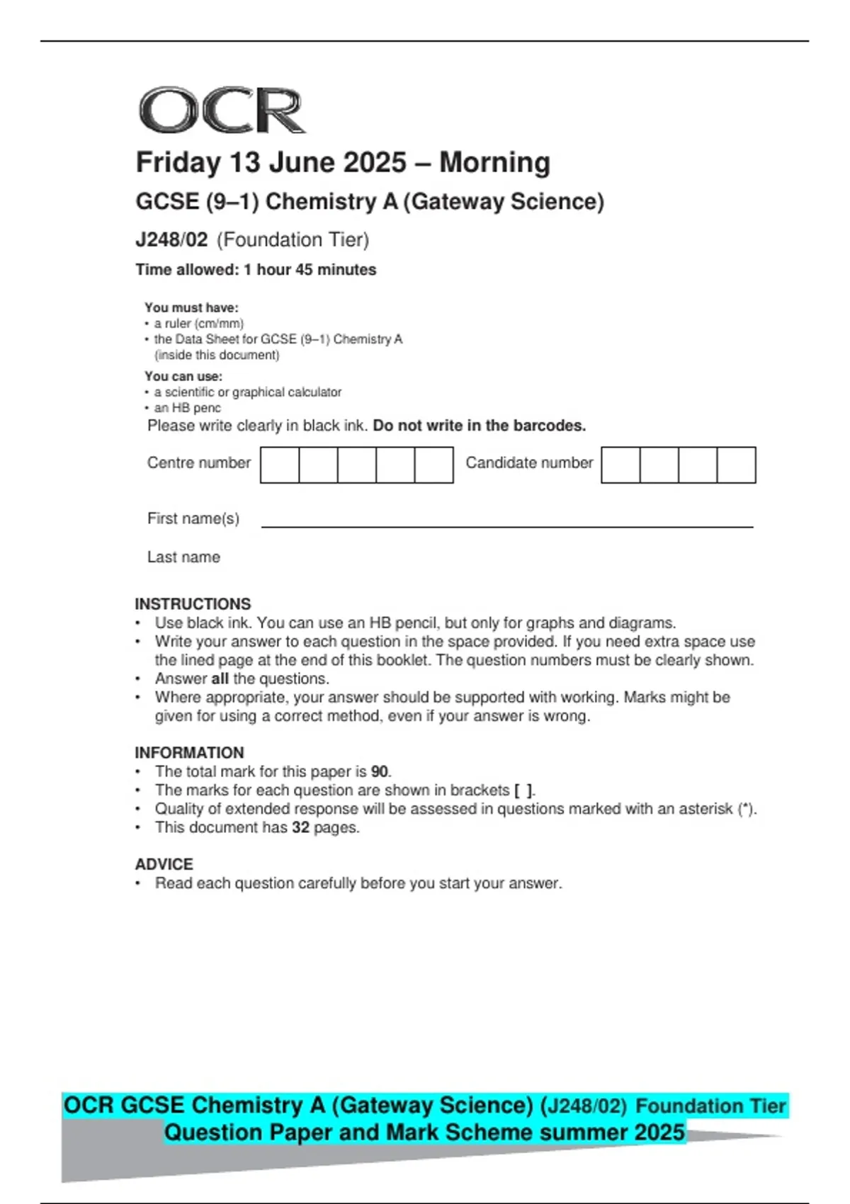 OCR GCSE Chemistry A (Gateway Science) (J248/02) Foundation Tier