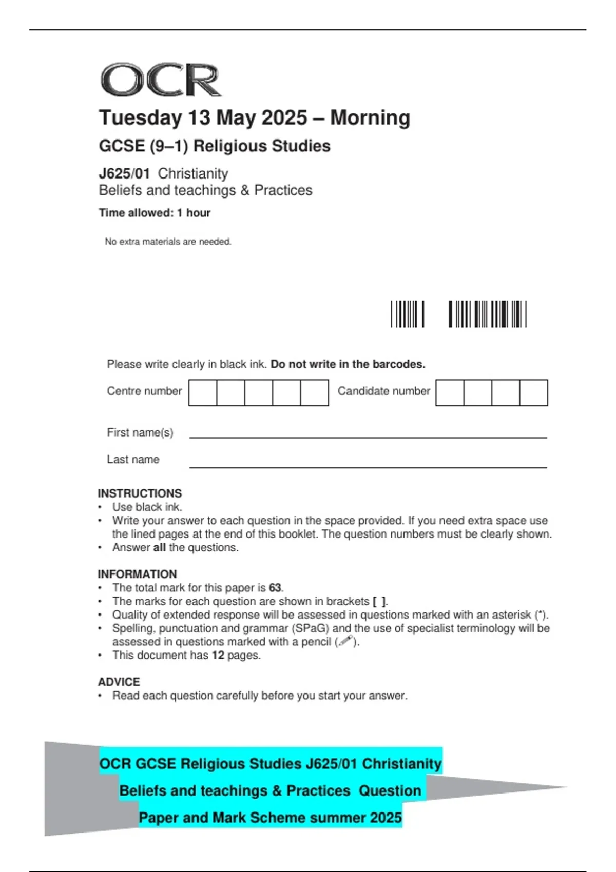 OCR GCSE Religious Studies J625/01 Christianity