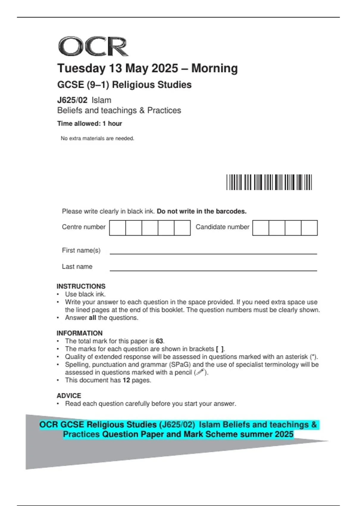 OCR GCSE Religious Studies (J625/02) Islam Beliefs and teachings &