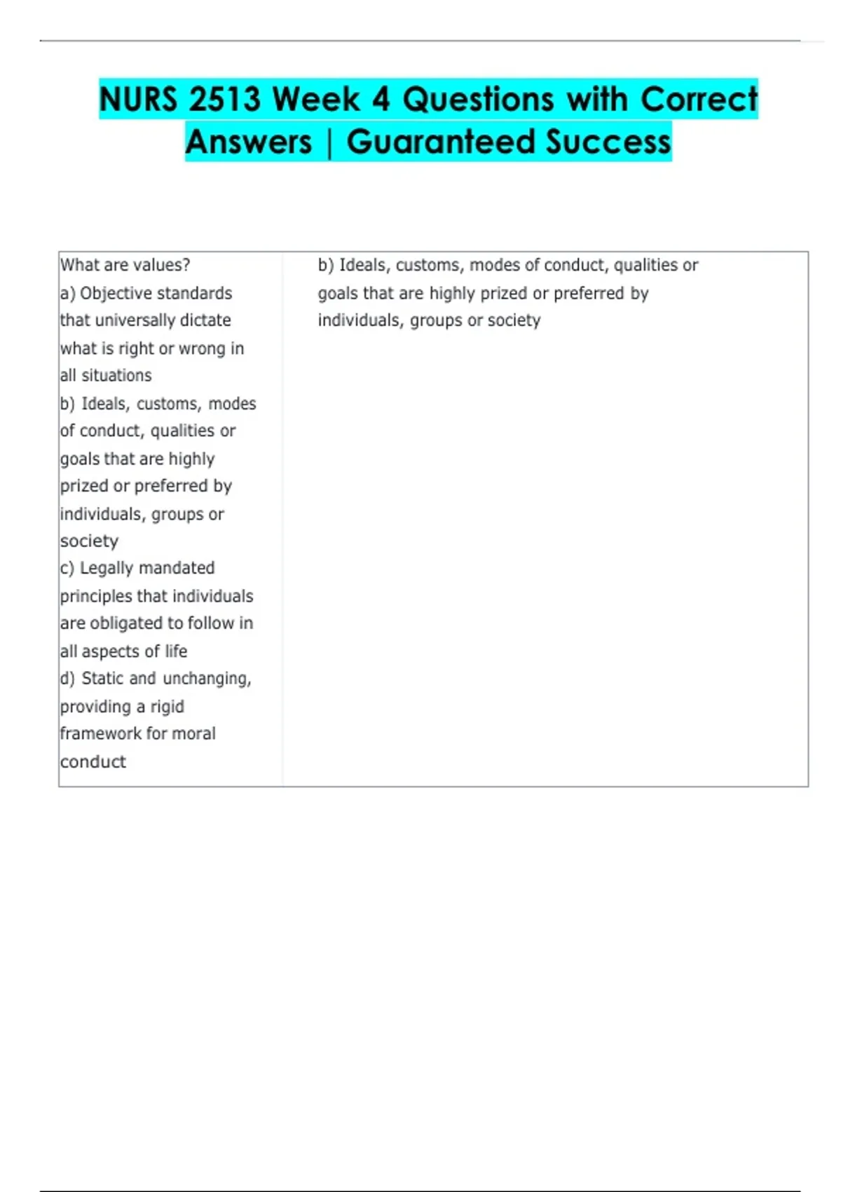 NURS 2513 Week 4 Questions with Correct Answers | Guaranteed Success