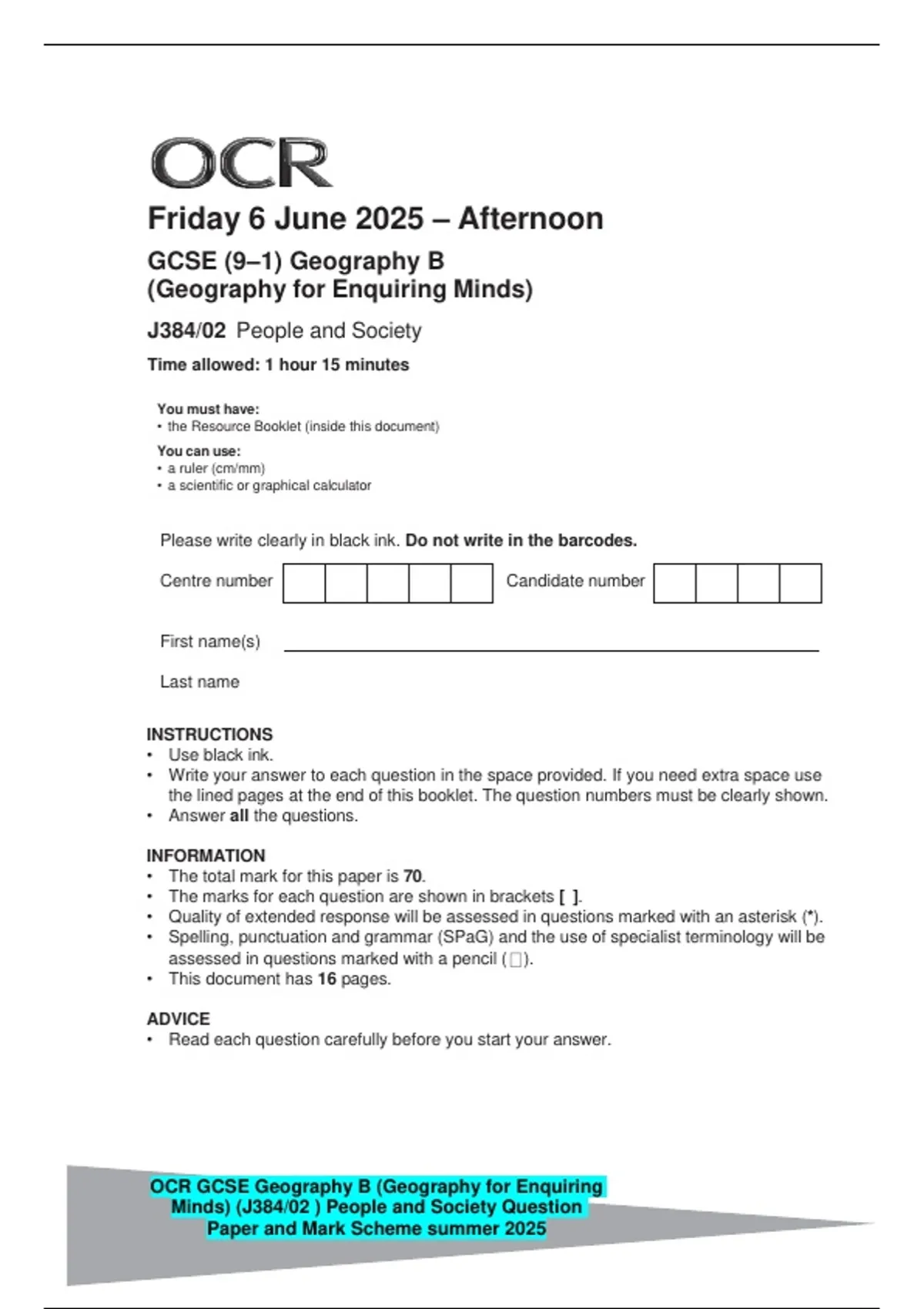 • Quality of extended response will be assessed in questions marked with an asterisk (*).
