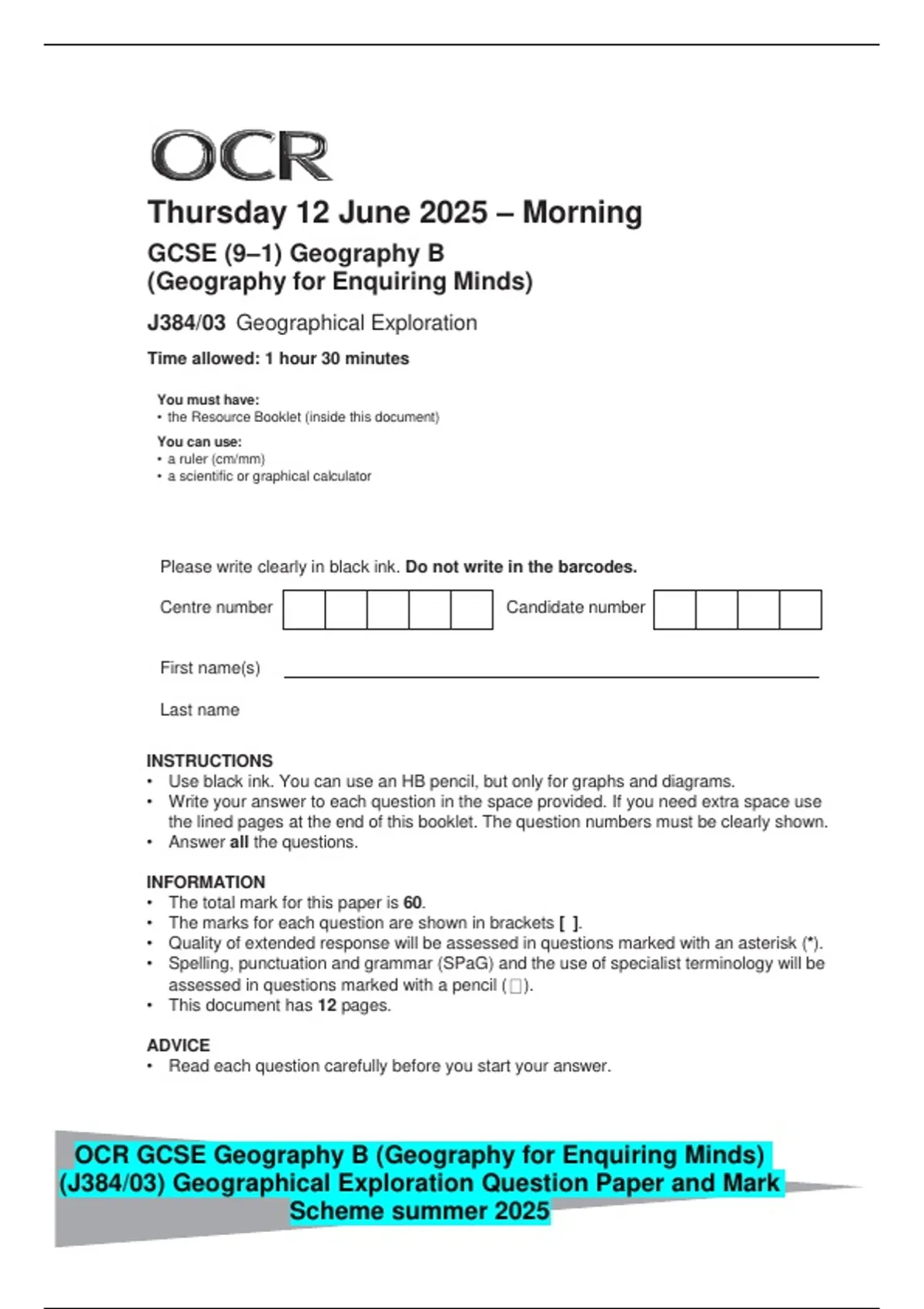 OCR GCSE Geography B (Geography for Enquiring Minds)