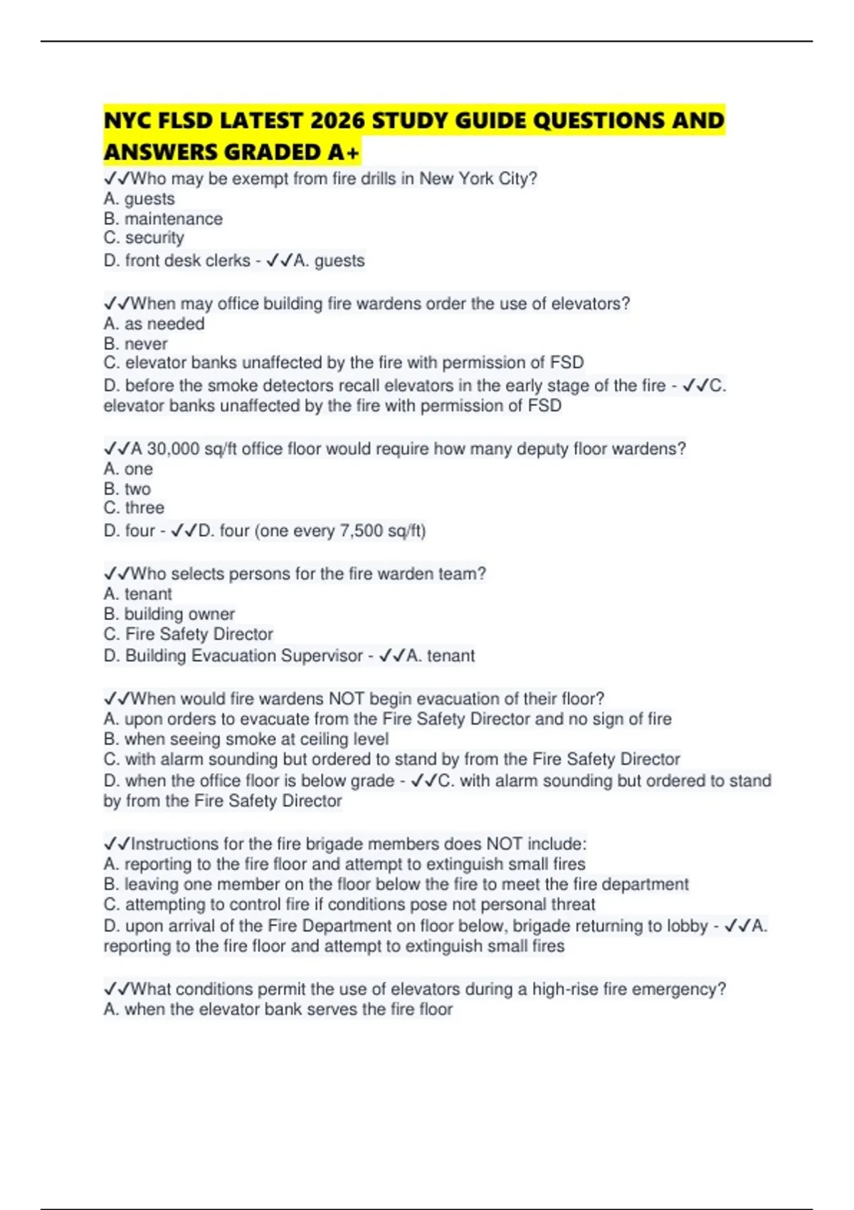 ✔✔Which item is NOT described as a key element of a Fire Safety Plan?
