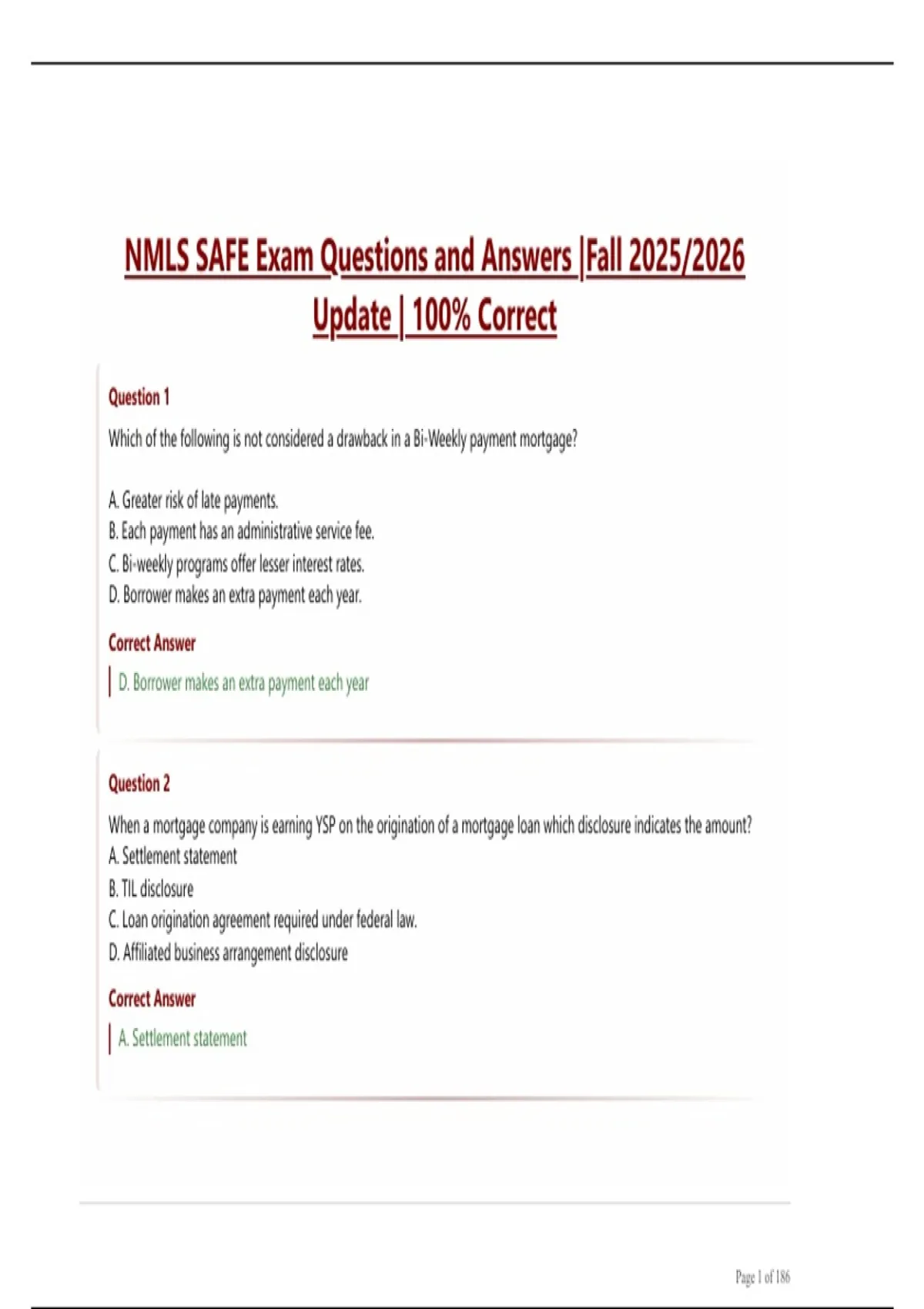 NMLS SAFE Exam Questions and Answers |Fall 2025/2026